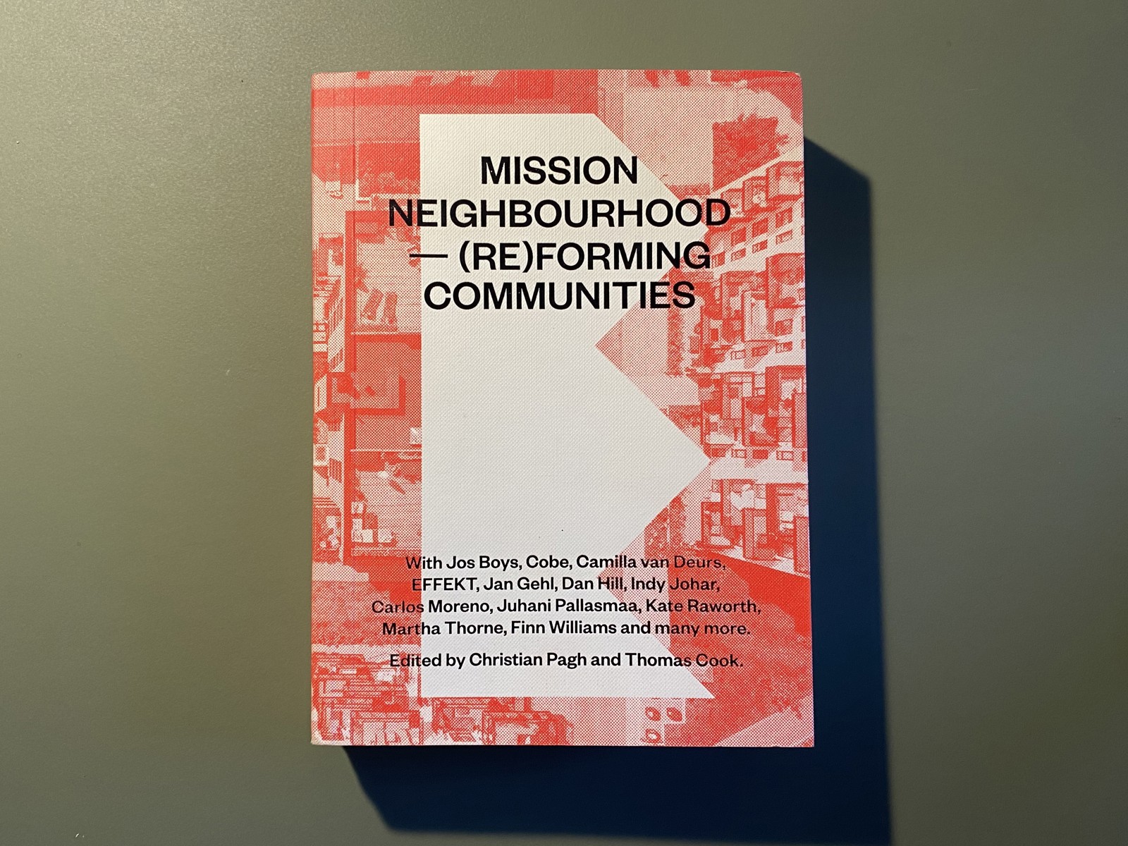 Bidragsyterne i Mission neighbourhood – (Re)forming communties er både arkitekter, planleggere, byutviklere, akademikere og embetsverk. De fleste har vært en del av Oslo arkitekturtriennale 2022 som enten utstillere eller innleggsholdere. Boken er laget av Christian Pagh og Thomas Cook.
