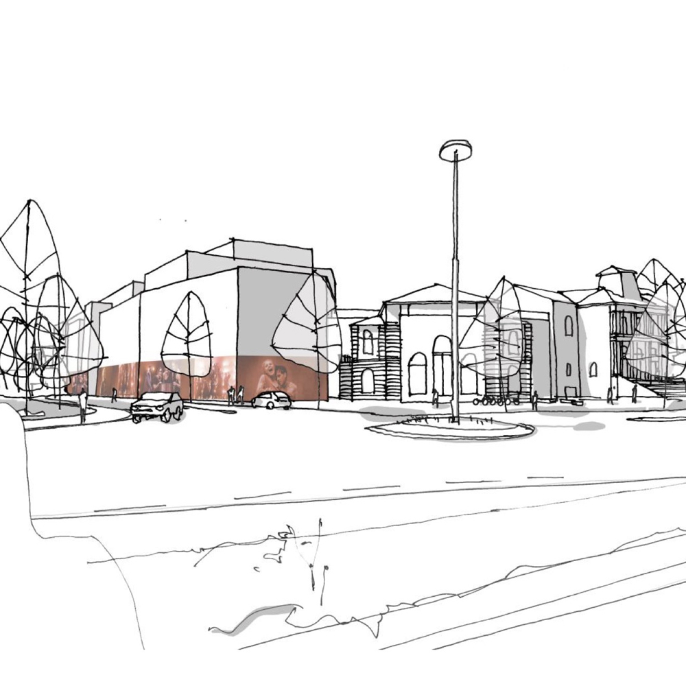 Illustrasjonen viser et forslag til hvordan nybygget til Rogaland teater og Stavanger museum kan se ut på Kannik-høyden i Stavanger.