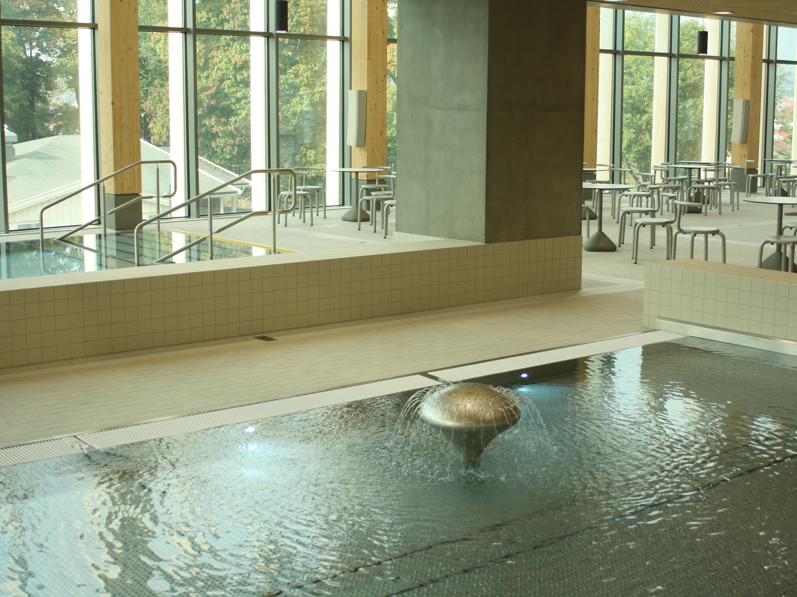 Stupebassenget er det orienterende elementet. Det er det første man ser når man kommer inn dørene, det første man ser når man kommer opp i bassengetasjen, og det første man kommer til ut av garderobene.