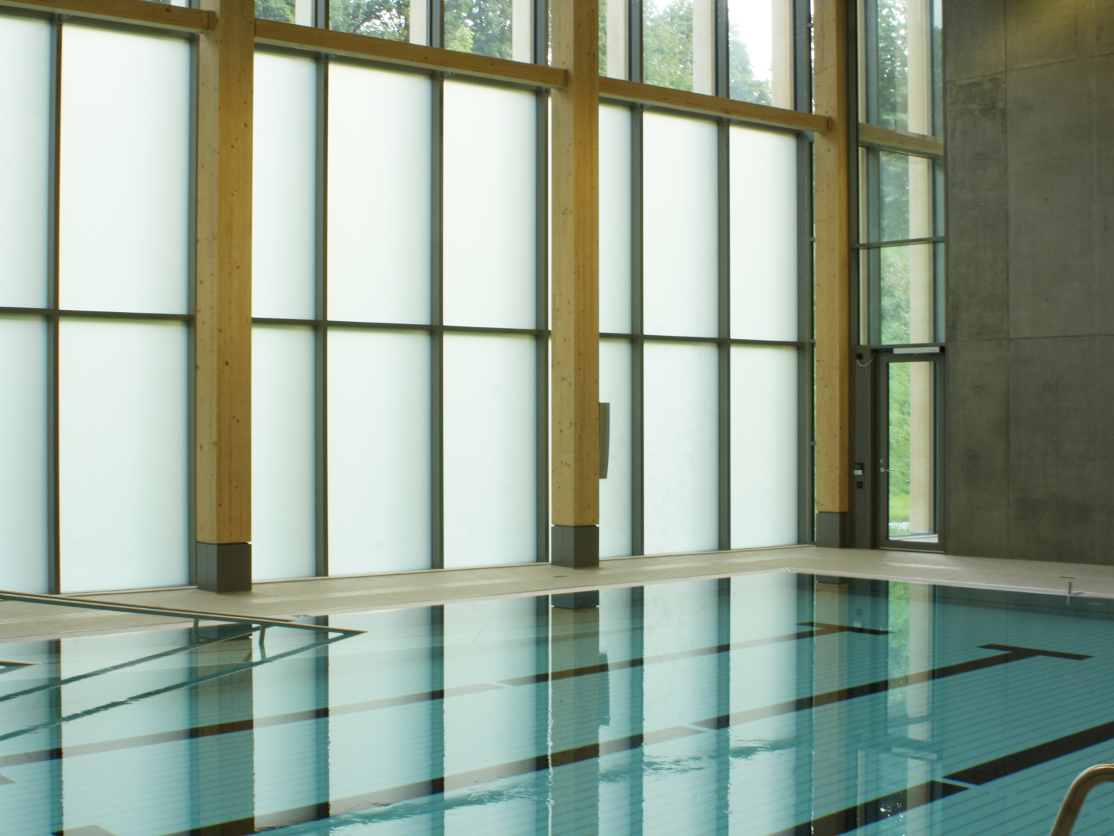 Ved opplæringsbassenget er det glass med spenning som gjør at rommet kan skjermes for omverden med et tastetrykk.