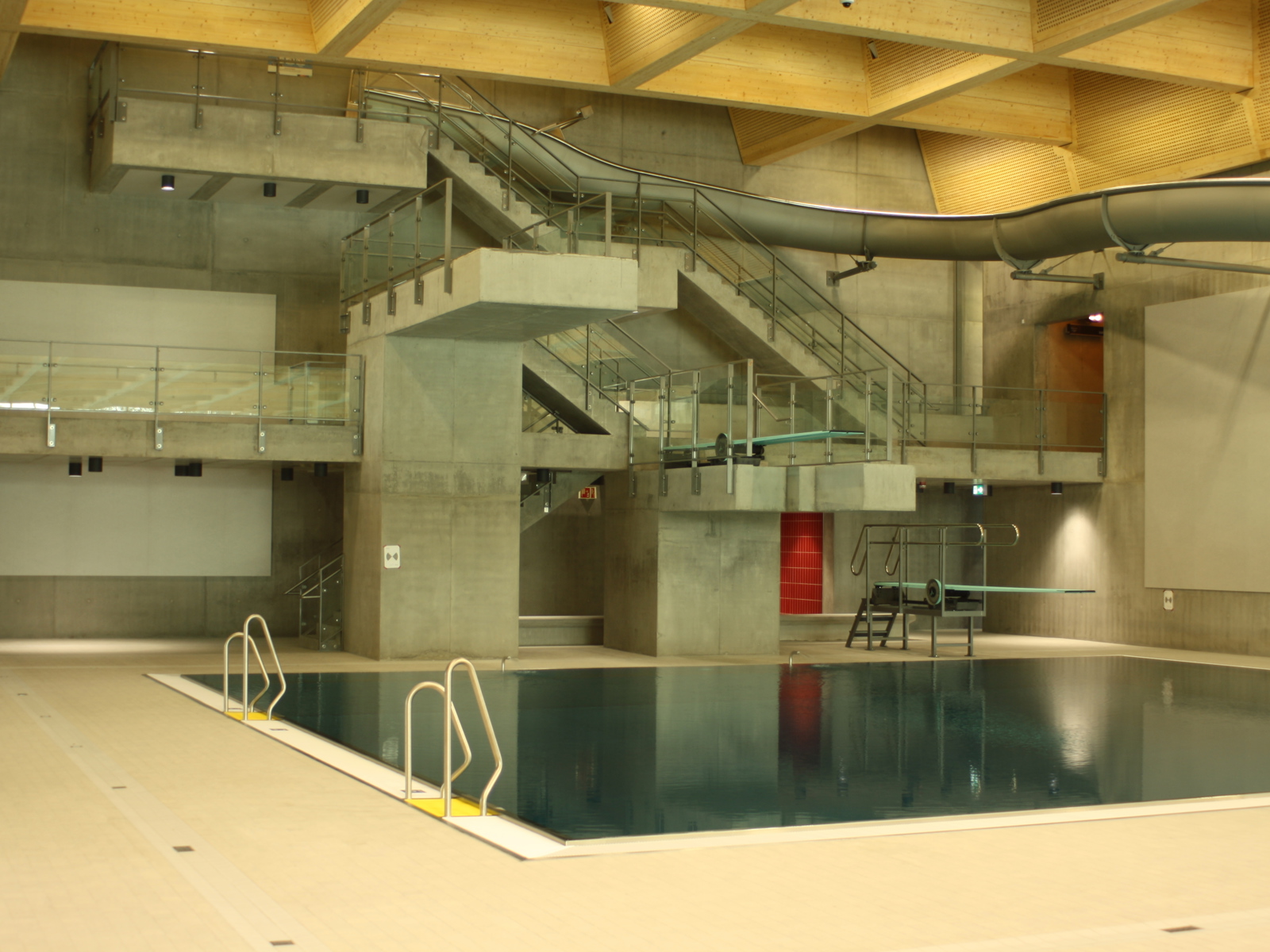 I tillegg til stupebasseng og det store konkurransebassenget er det også et eget, skjermet opplæringsbasseng, et lite plaskebasseng for de aller minste, samt et familiebasseng med forbindelse til et helårs utebasseng.