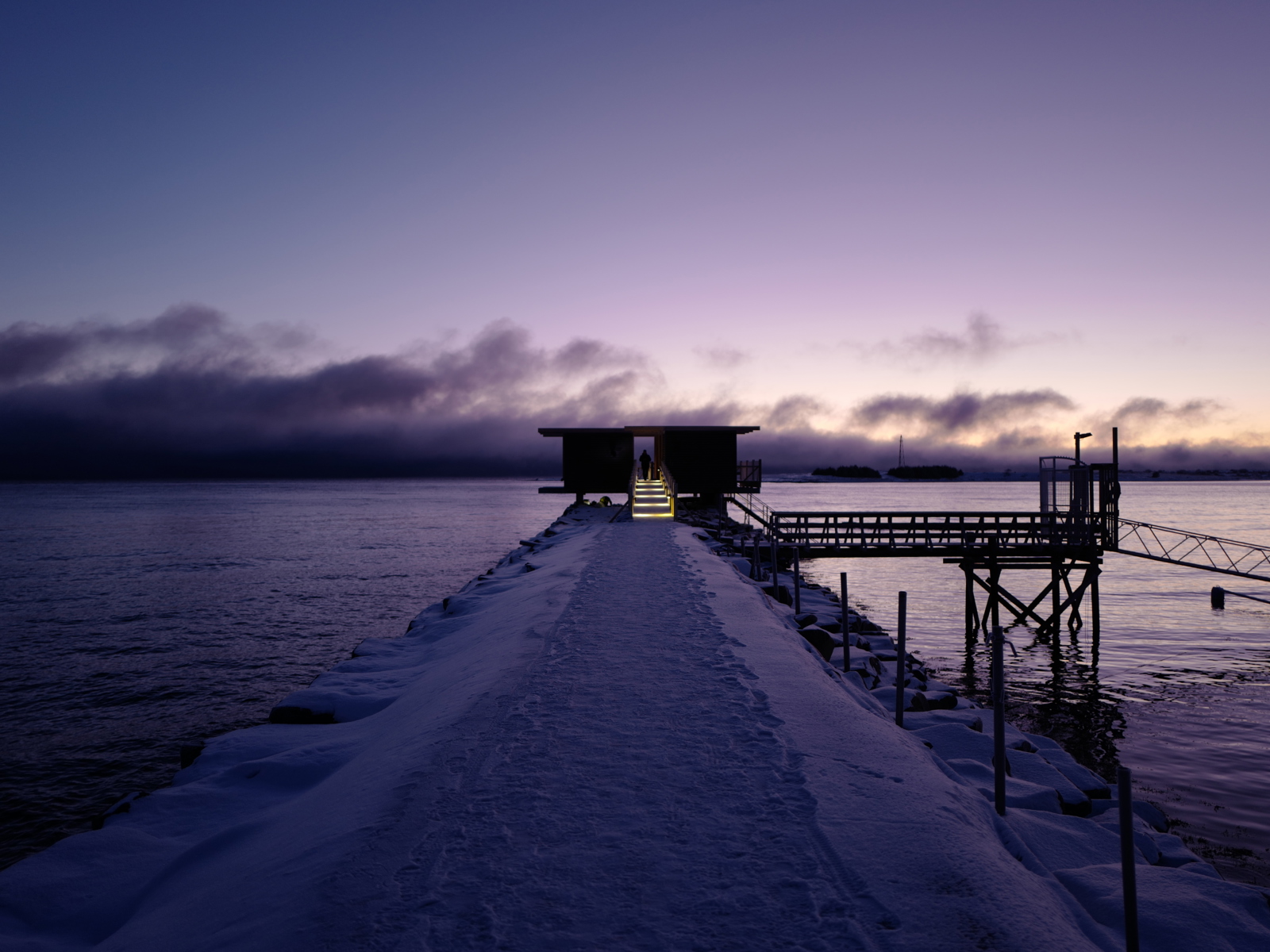 Den offentlige badstuen Horisontti er tegnet av HALLSTEIN og ligger på tuppen av en molo like utenfor Vadsø sentrum.
