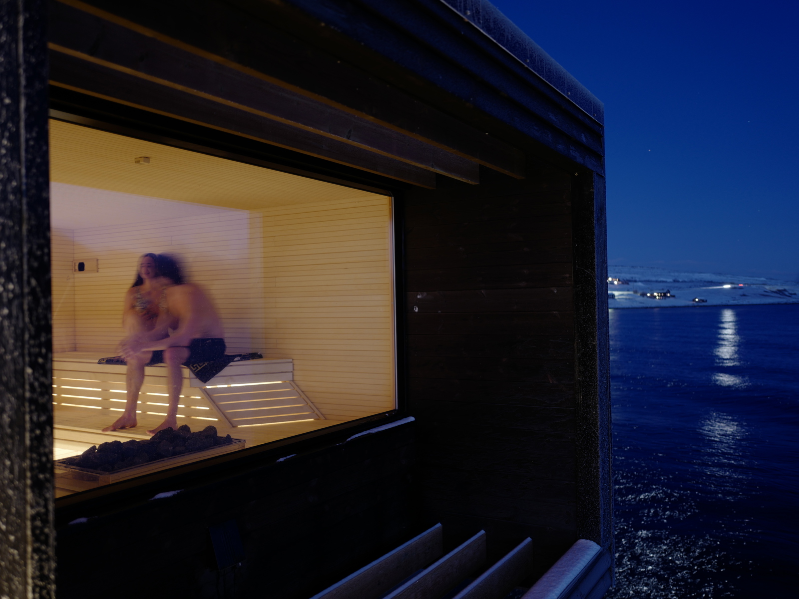 Det lille anlegget, som består av badstue, hvilerom og toaletter og dusj, minner om sjøhusene man finner på land like ved. Moloen går gjennom anlegget, og gjør havet tilgjengelig for alle.