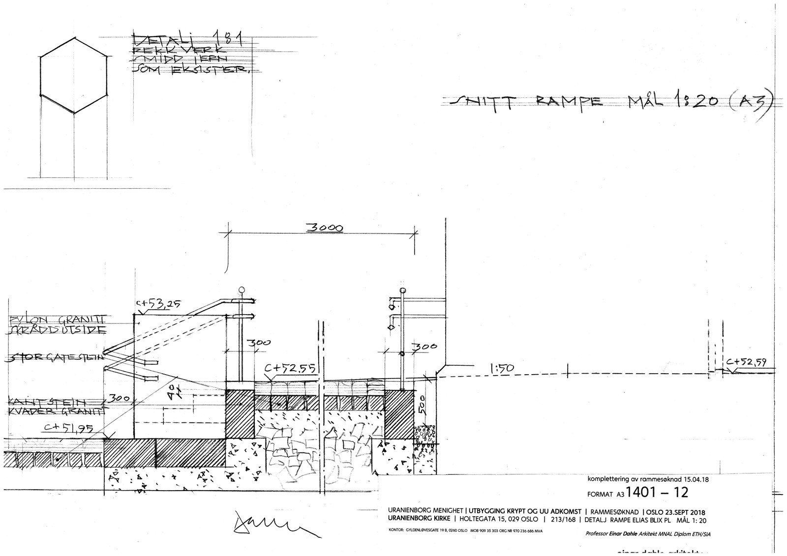 I skissen fra 2018 er det presisert at rampen skal være med storgatestein.