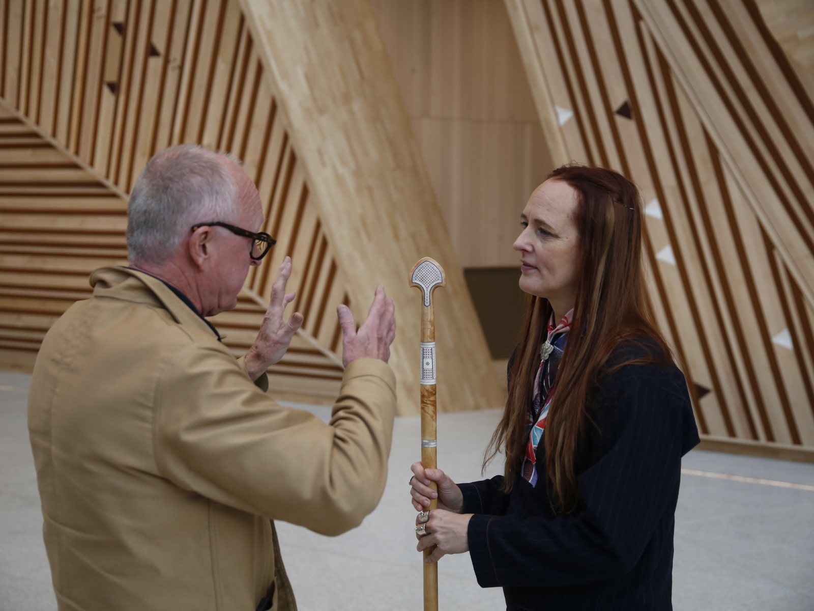 Arkitekt Gudmund Stokke og kunstner Outi Pieski.