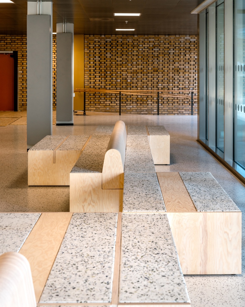 Det er 3RW arkitekter som hadde ansvar for interiør, gjenbruk og ombruksdelen av prosjektet. Sixten Sixten Rahllf, partner i 3RW, mener diskusjonen om hvor mye av eksisterende overflater som kunne vises frem for brukerne av bygget ikke ble utforsket til fulle.
