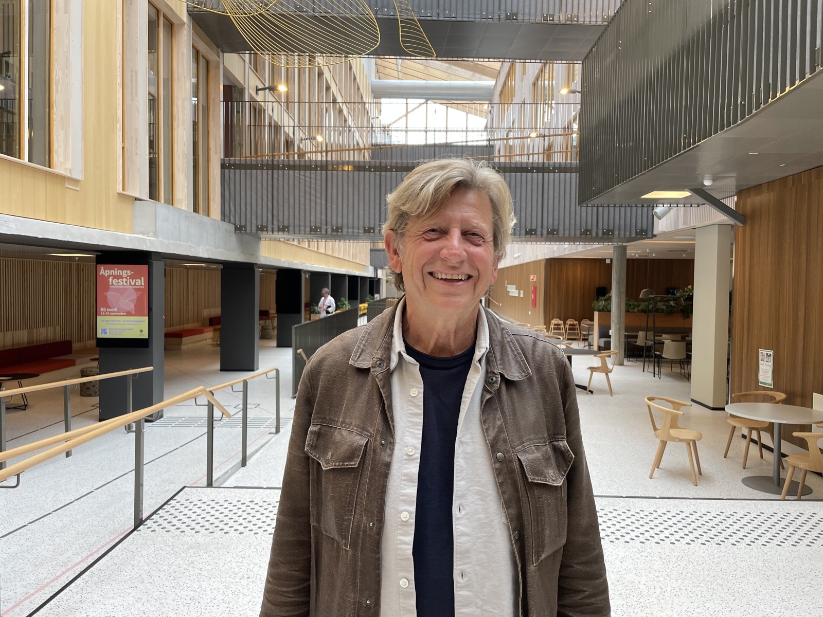 Per Højgaard Nielsen, prosjektleder og arkitekt i HLM, viser Arkitektur rundt i bygningen.