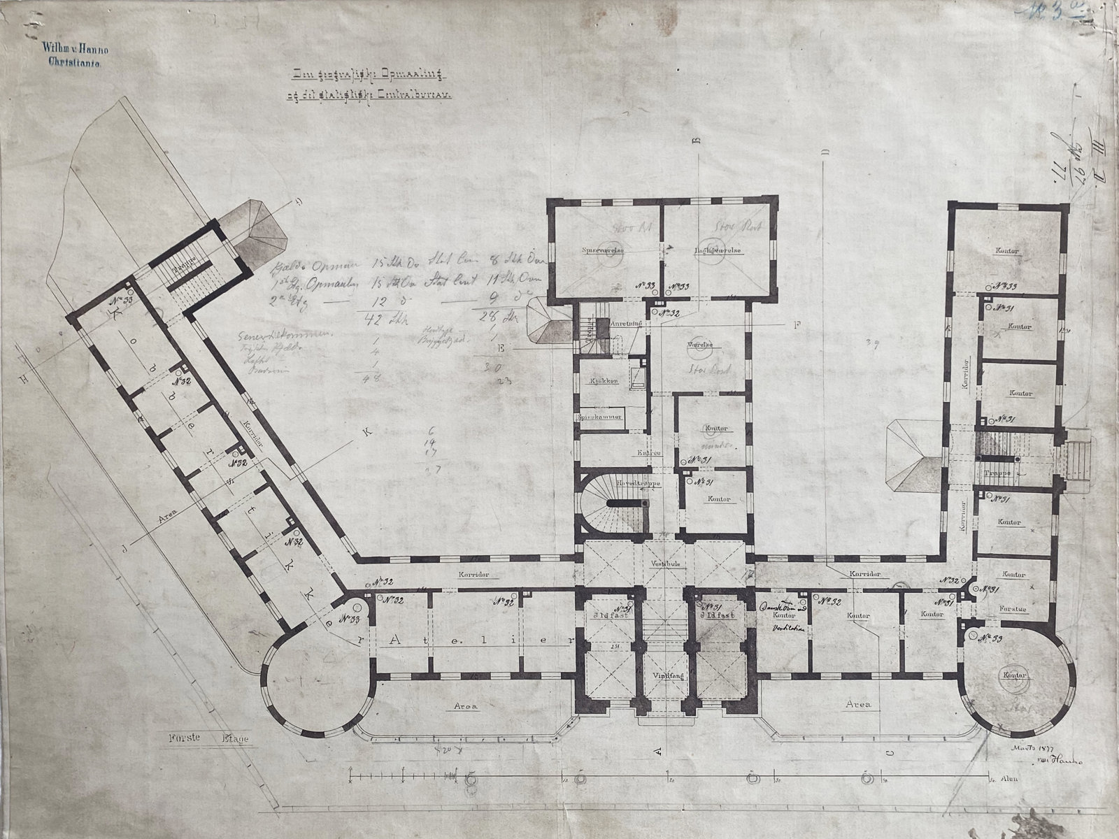 Fra Wilhelm von Hannos originale tegninger av bygget, bevart hos Nasjonalmuseet.