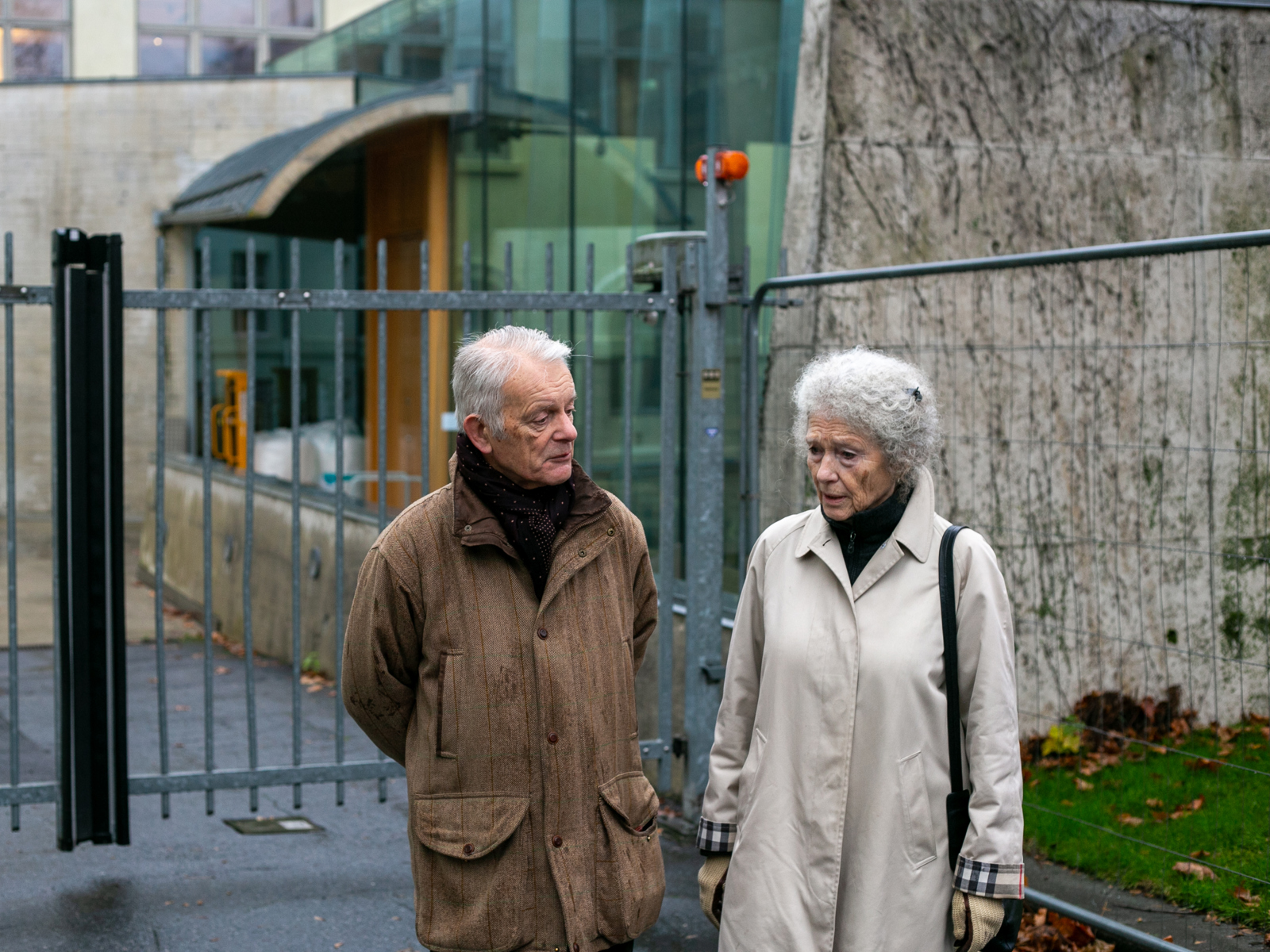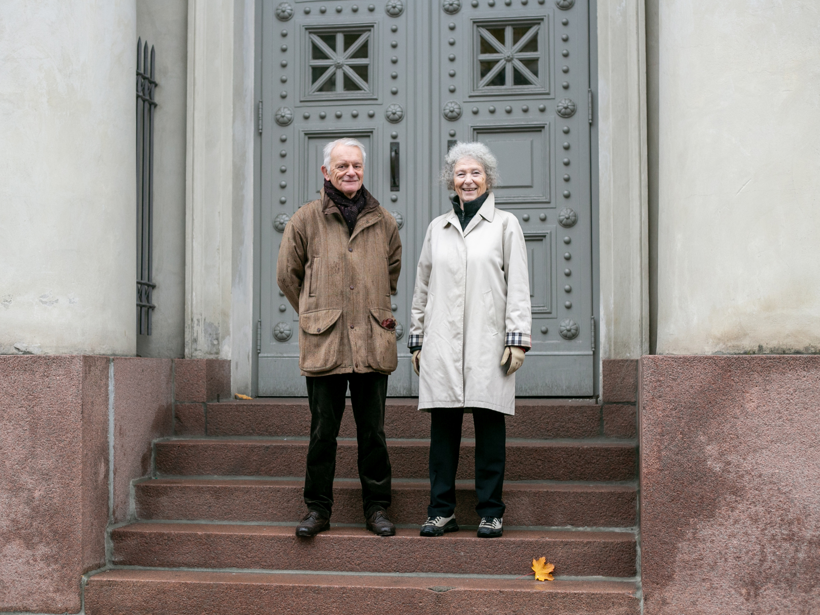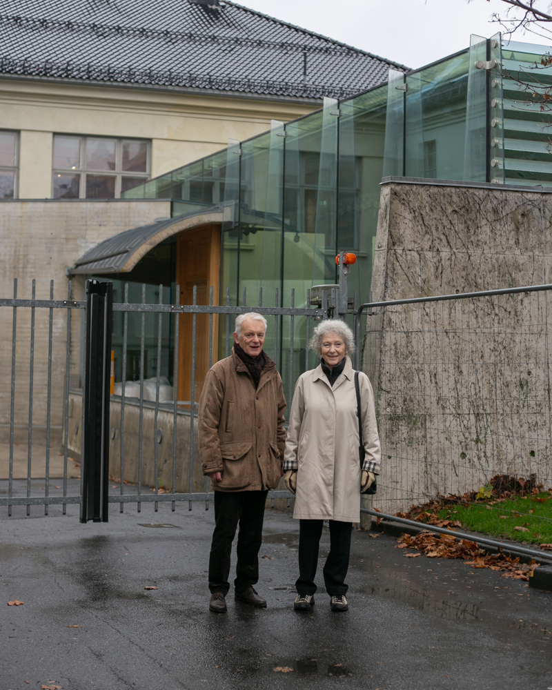 Ulf Grønvold og Elisabeth Seip har skrevet hvert sitt bind med arkitekturhistorie, og er også redaktører for serien. Her står de foran Nasjonalmuseet for arkitektur, som de, den gang det heter Norsk Arkitekturmuseum, var de to første direktørene for.