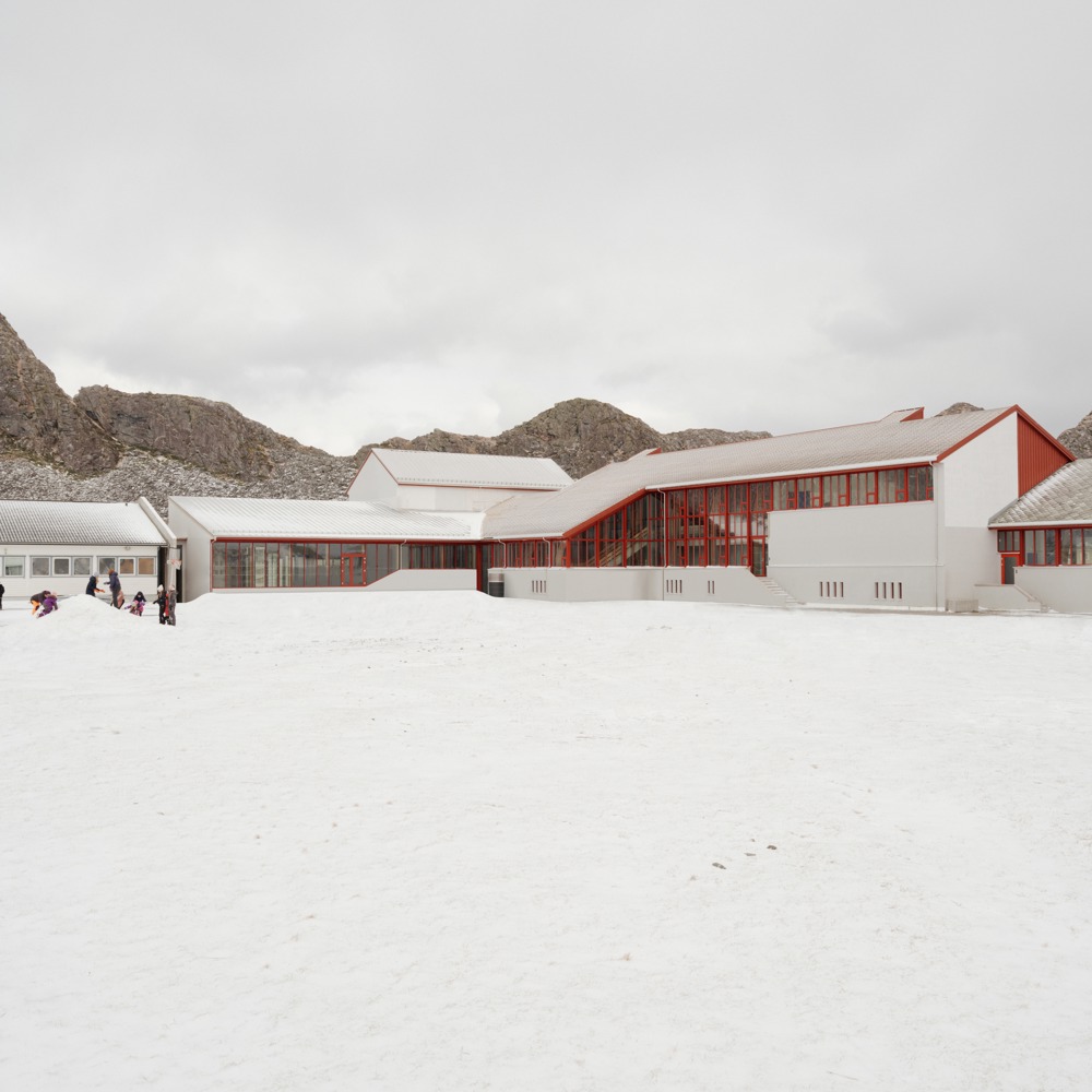 En liten kommune langt ute i havet har latt bevaring av en vakker gammel skole stå i fokus og samlet undervisning, idrett og kultur i en ny lokal møteplass, skriver juryen, bestående av Marina Bauer, Kristine Røiri og Harald Seljesæter.