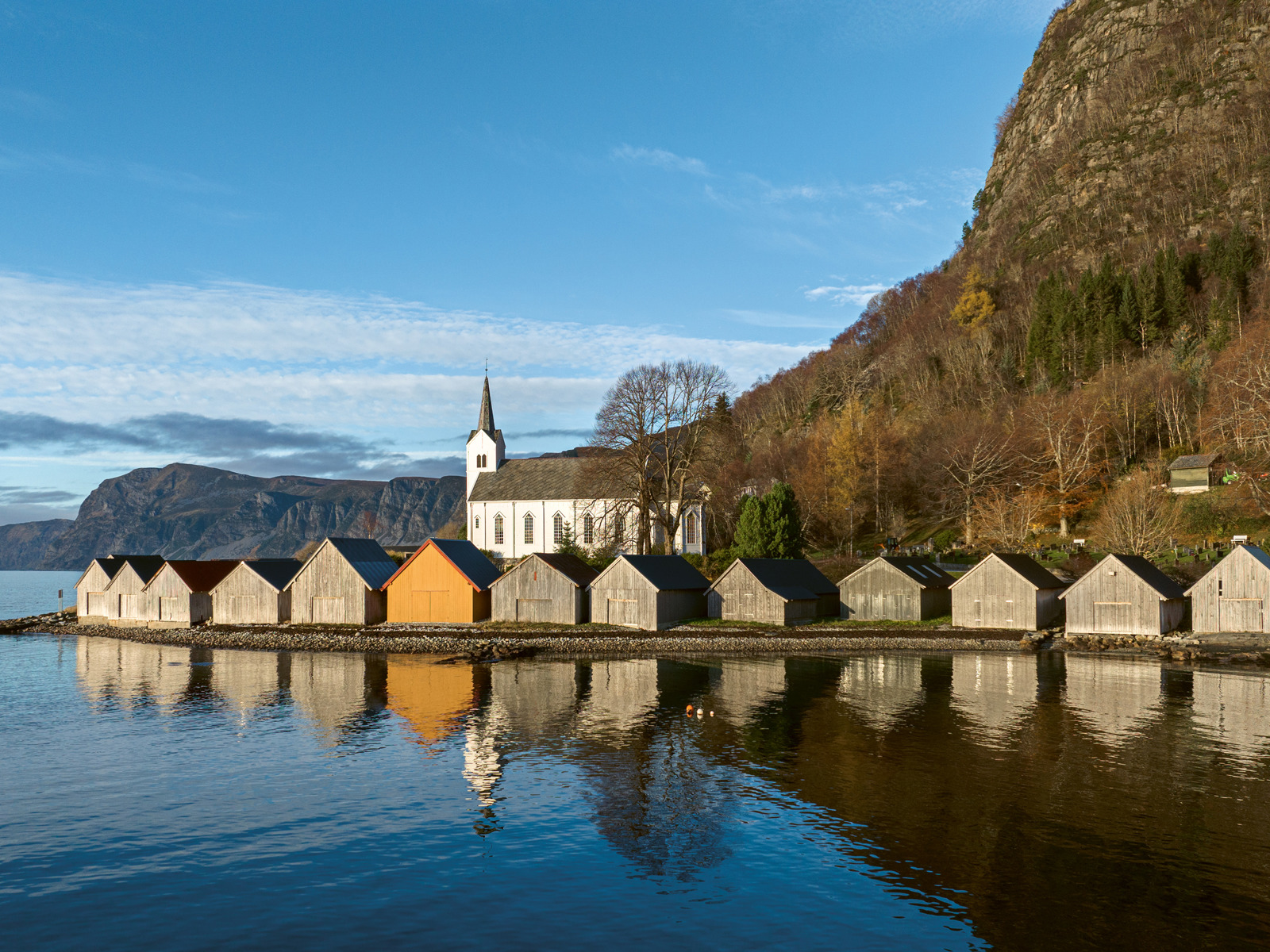 Naustrekken i «kyrkjefjøra» i Selje er lang med hele 34 naust. – Det er ikke mulig å ta vare på alle naust, men det finnes noen spesielt fine miljø med masse historie som bør tas vare på, sier Eva Røyrane, forfatter av boken «Naustlandet» (Skald forlag).
