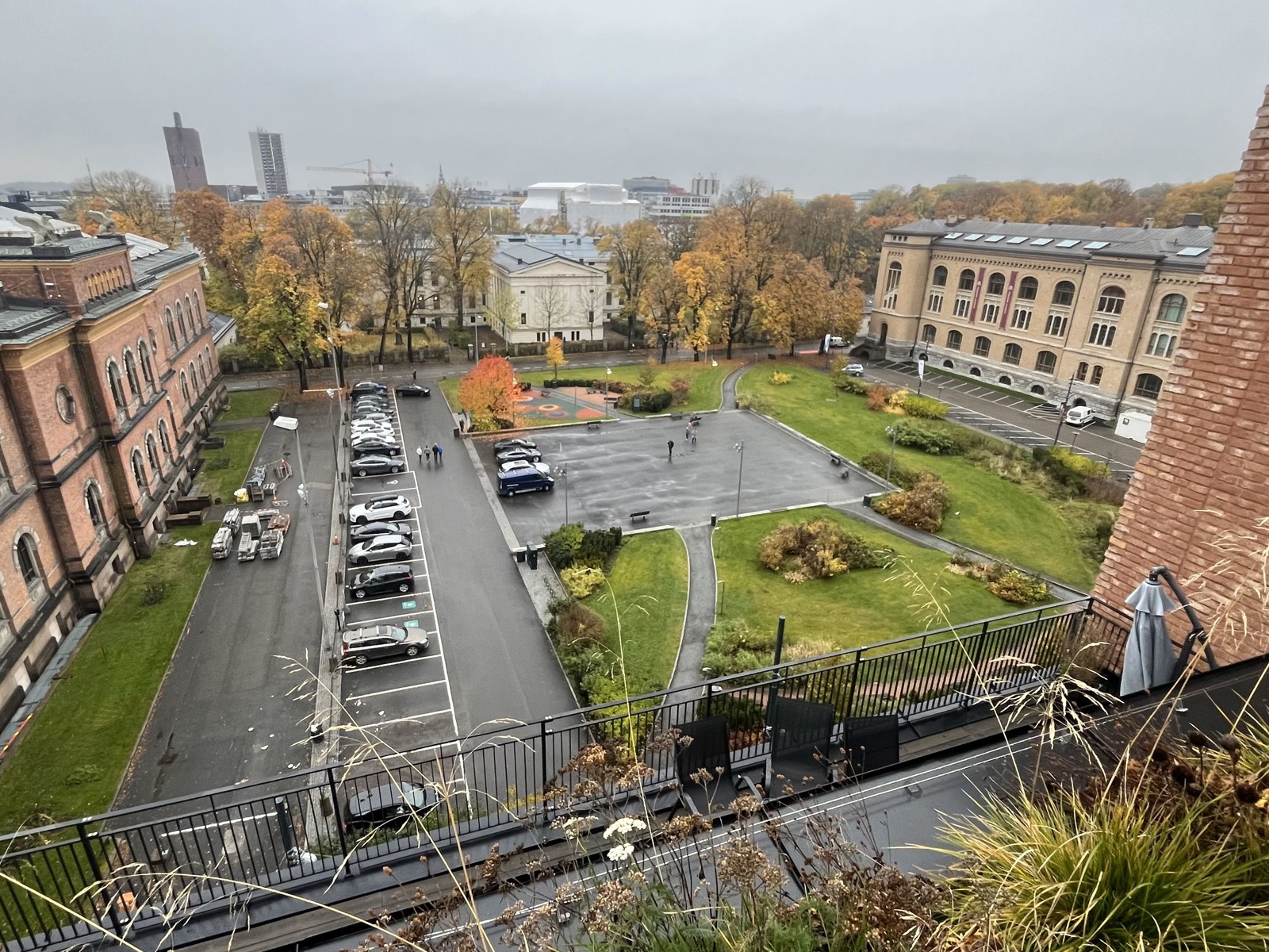 Slik ser Tullinløkka ut i dag, sett fra taket på Kristian Augusts gate 13. Plasseringen Mad foreslår vil først og fremst gå ut over et stort parkeringsareal som ikke burde være der i det hele tatt, mener Singstad.