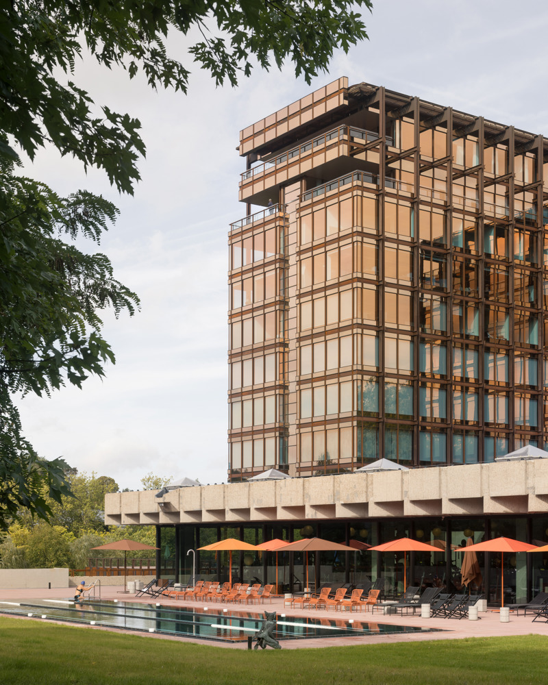 Nyrenoverte Royale Belge utenfor Brussel, opprinnelig tegnet av René Stapels og Pierre Dufau, og pusset opp og transformert av Caruso St John Architects, Bovenbouw Architectuur og