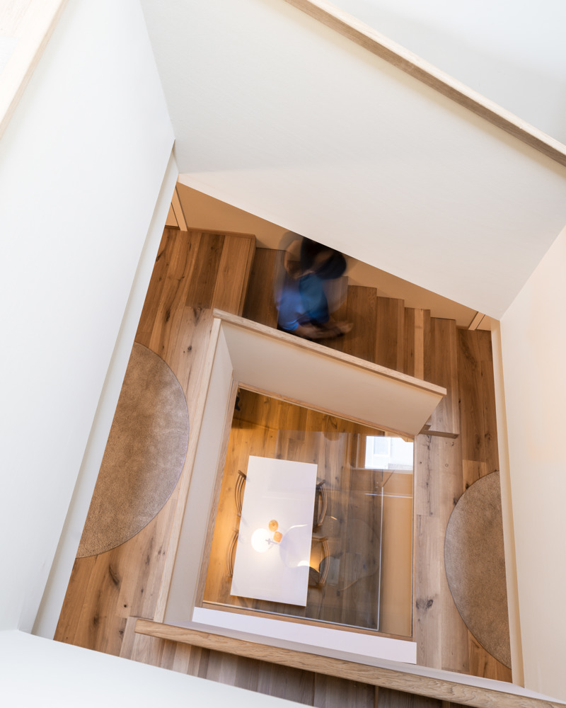 – Oppover i huset skaper de halve etasjene en kontakt mellom de som bor der, med sosiale soner, som skaper kontakt uten at de nødvendigvis er i samme rom. I tillegg slipper du et trappeløp i huset som kun blir transport. De halve trappene skaper en mye mer romlig bevegelse gjennom etasjene, forklarer arkitekten, som driver Opaform sammen med Marina Bauer.