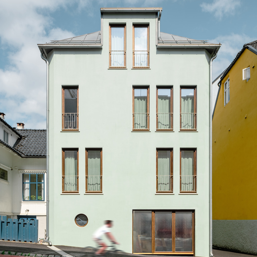 – Det er et klassisk motiv. Vi tenker ikke først og fremst på dette som klassisk, men det handler mer om å passe inn i kontekstene huset står i. Som alltid leter vi etter hint i omgivelsene for å se hva vi kan legge til. I dette tilfelle måtte vi tilpasse oss et strøk av lave murbygårder fra begynnelsen av 1900-tallet og en sveitservilla fra 1800-tallet, som nærmeste nabo. Da er det naturlig at vi passer inn rytmen i fasade og inndeling. Det motivet som huset da skaper blir da noe Arkitekturopprøret også liker.
