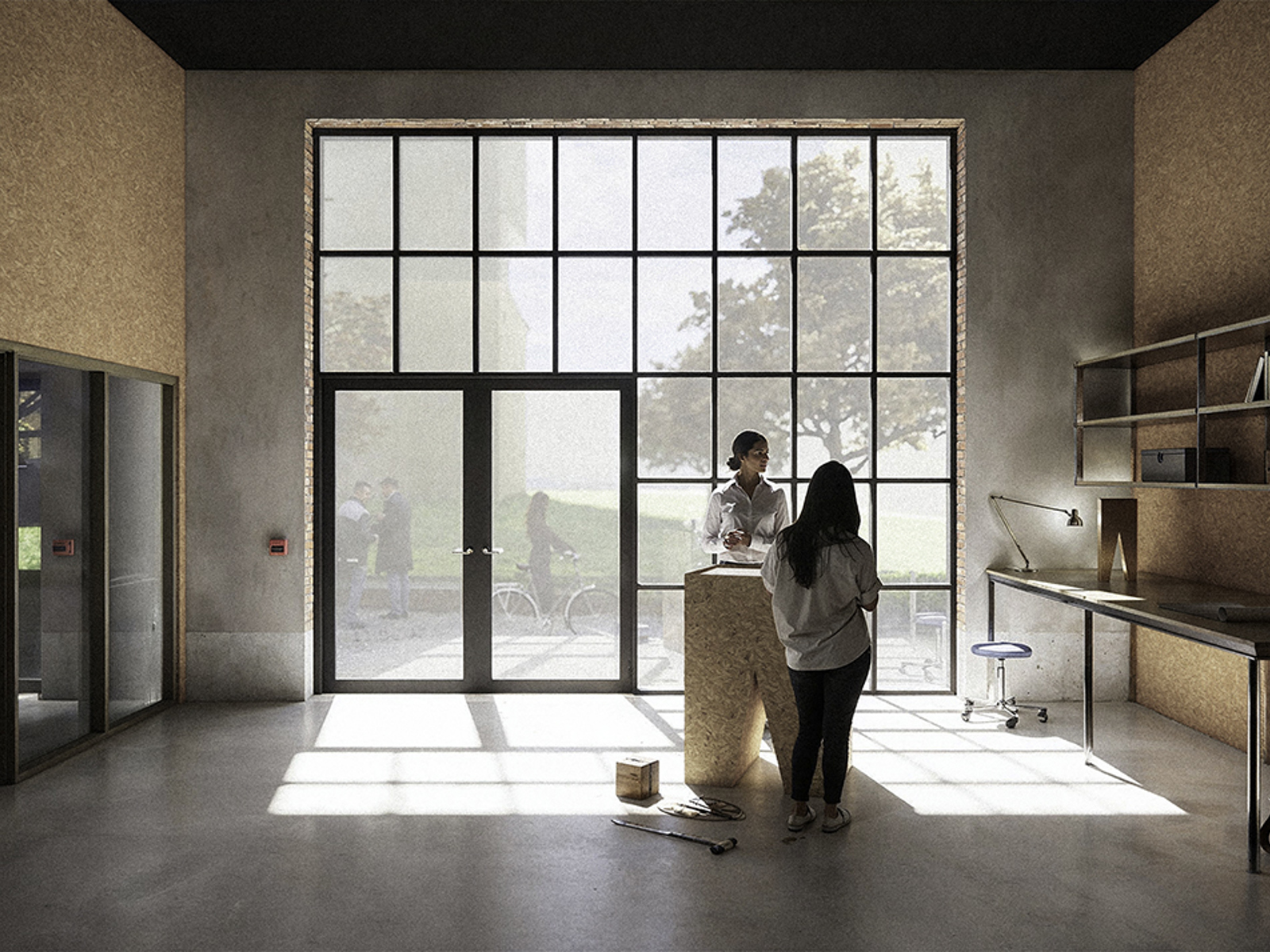 Slik ser Transborder for seg at et verksted liggende ut mot parken vil se ut.