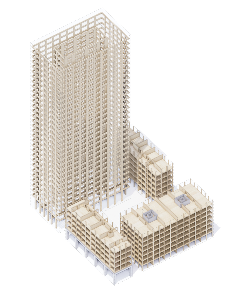 Prosjektet utmerker seg ifølge arkitektene ikke bare for høyden, men også for sitt innovative konstruksjonssystem, hvor tre erstatter betong. Foto: Schmidt Hammer Lassen Architects