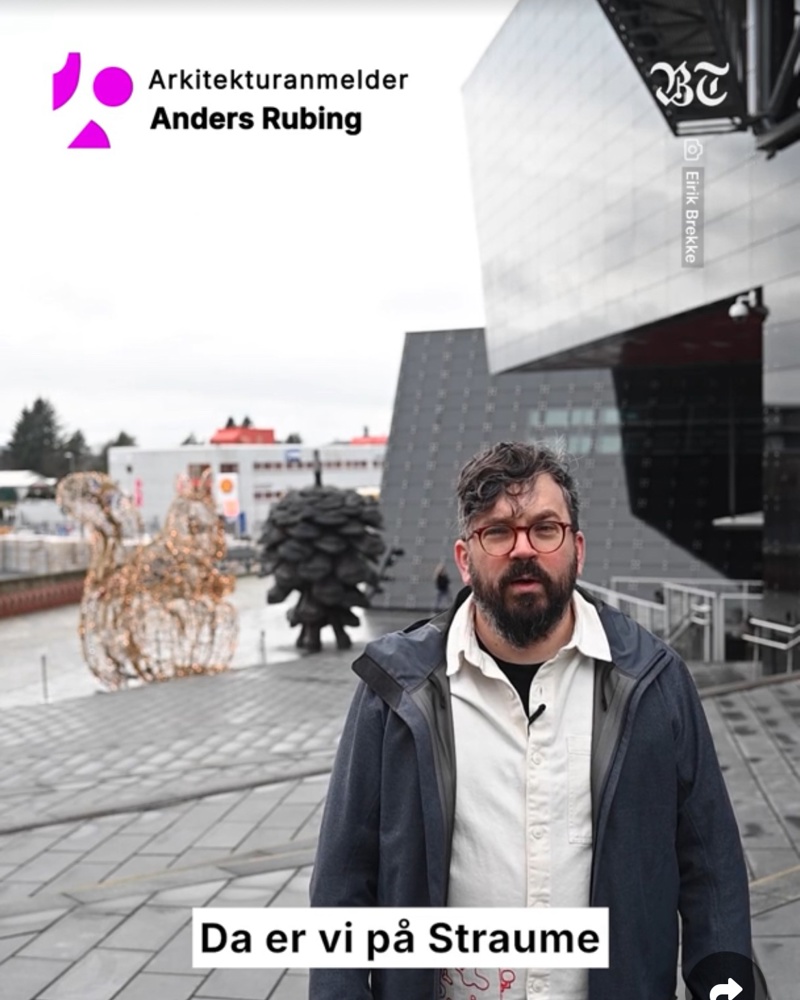 Anders Rubing i felt som arkitekturanmelder i videoformat på Straume vest for Bergen.