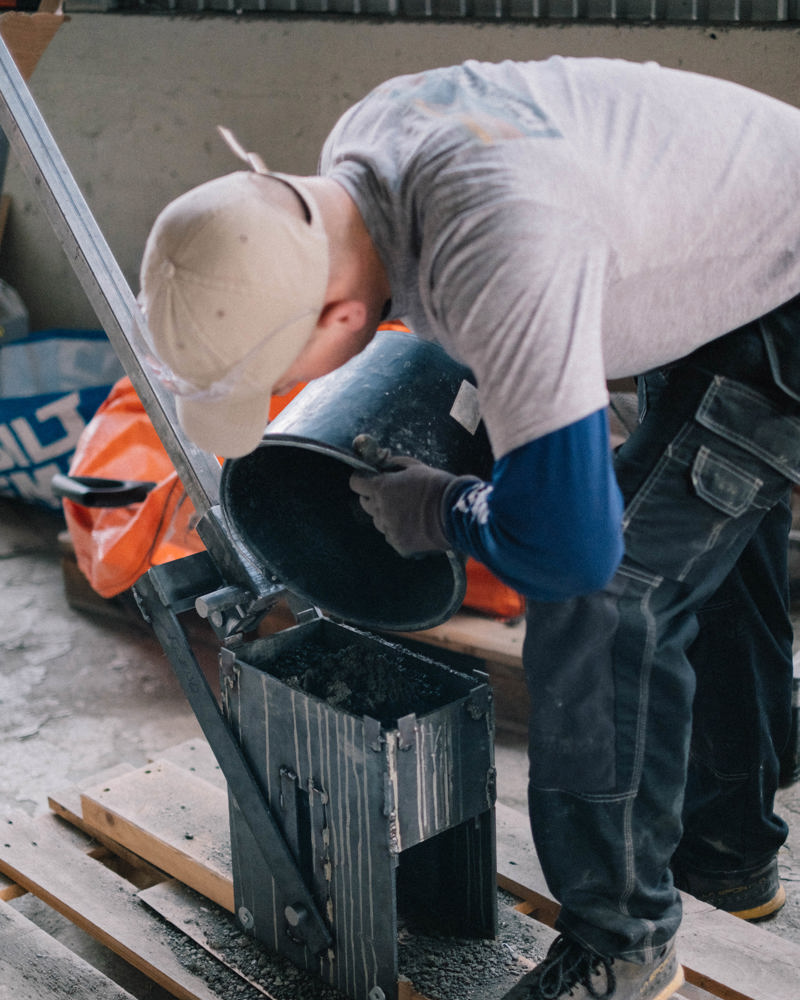 Produksjon og testing av leireblokker med arkitekt Elias Mølnvik.