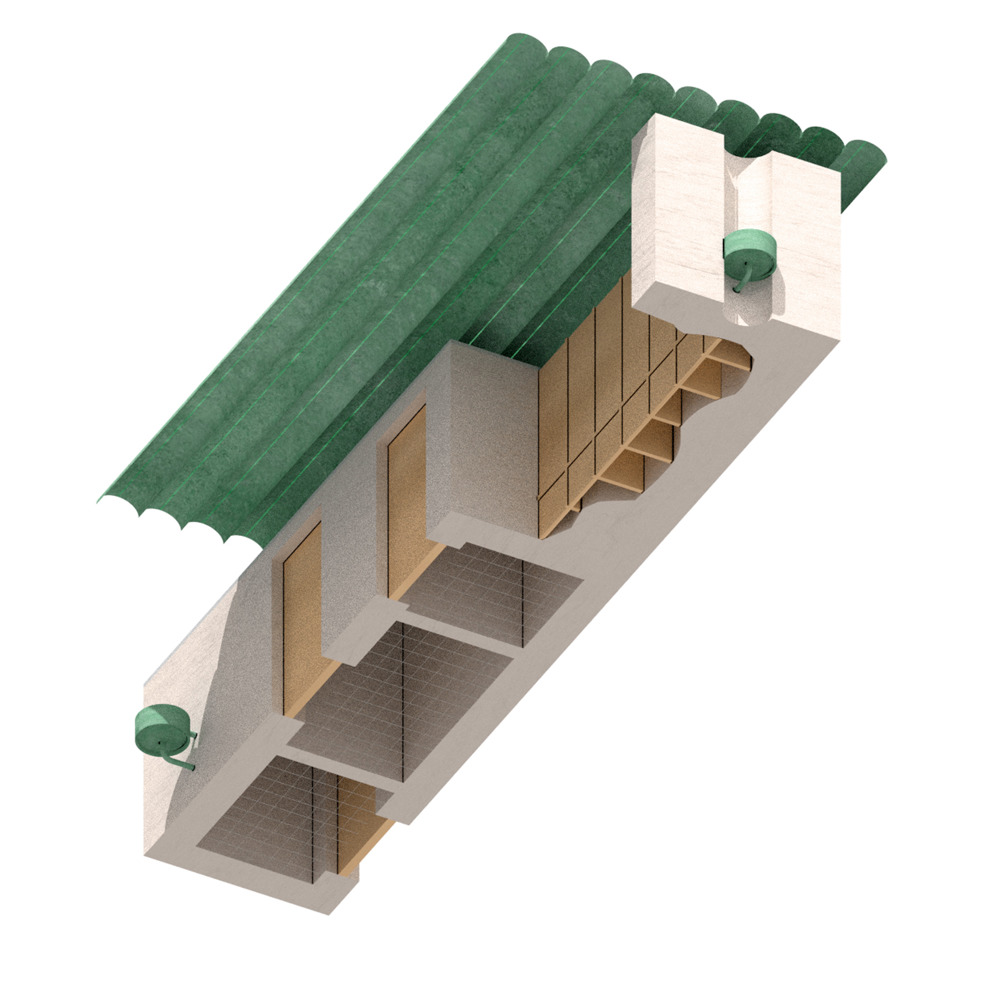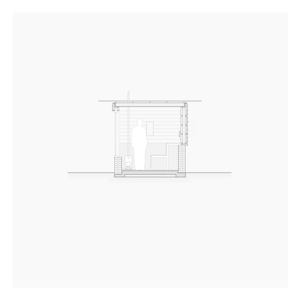 Prosjektert badstue til Bae gård. Grunnmuren er i resirkulert tegl og vegger i trevirke som allerede er på gården.
