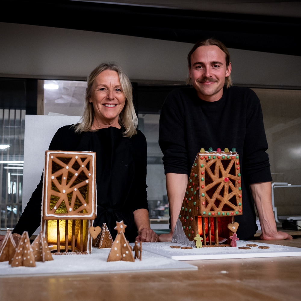 Arkitekt Ingebjørg Skaare og arkitektpraktikant Andreas Kamark, begge Snøhetta, er arkitektene bak det nye pepperkakehuset. Hvor vanskelig er det egentlig å være pepperkakehusarkitekt?