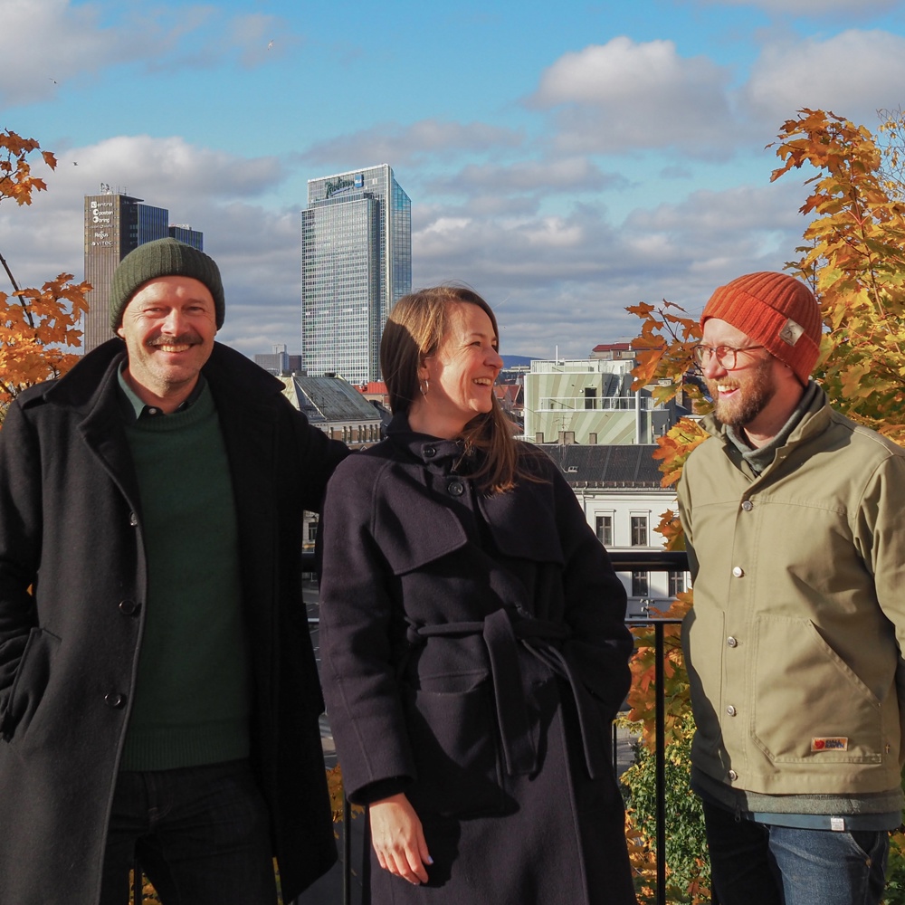 Rasmus Reinvang (t.v) er ny styreleder i Lala Tøyen. Her sammen med Tone Selmer-Olsen, daglig leder, og Iwan Thomson, grunnlegger.