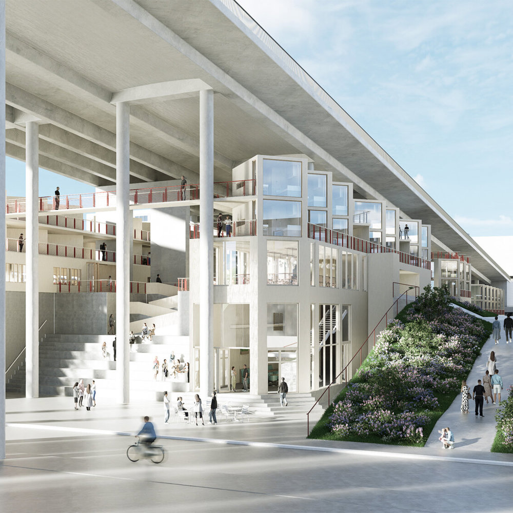Bo her? I oppgaven «Studentbolig Beneath» ser arkitektstudentene Daaneel Rahman og Hesam Booryaei ved Bergen Arkitekthøgskole for seg studentboliger under Puddefjordsbroen i Bergen.