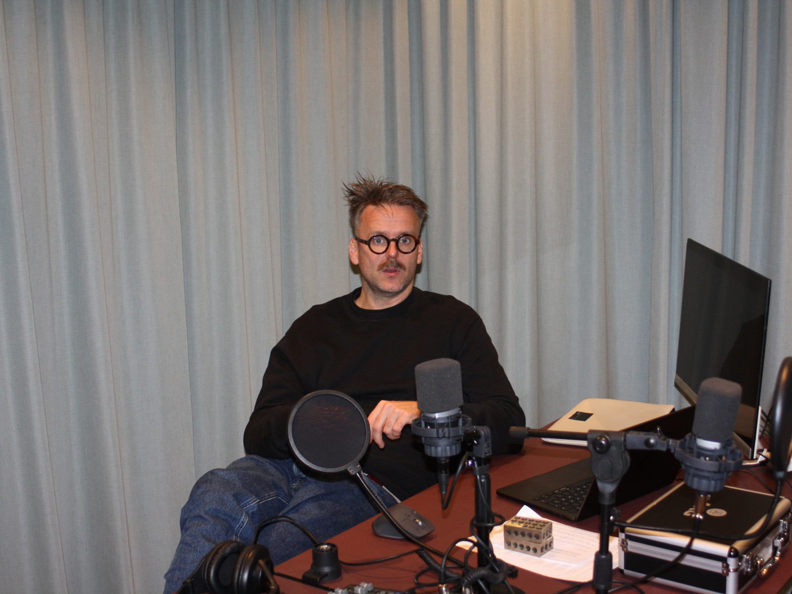 Foto: Torgeir Holljen ThonI en ombygd kjellerbod i Rosenborggata i Oslo sitter Magnus Ravlo Stokke og gjør siste finpuss på tredje episode av hans nystartede podkast «Arkitektpodden». Han har allerede rukket å ha besøk av Peter Butenschøn (episode 1) og Knut Hjeltnes (episode 2), mens episode 3 er dedikert gjesten Tina Larsen, relativt fersk NAL-president.