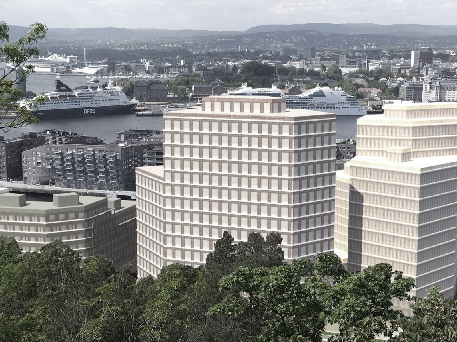 Slik ser utsikten ut fra Ekeberg i Hav Eiendoms planforslag for Grønlikaia.