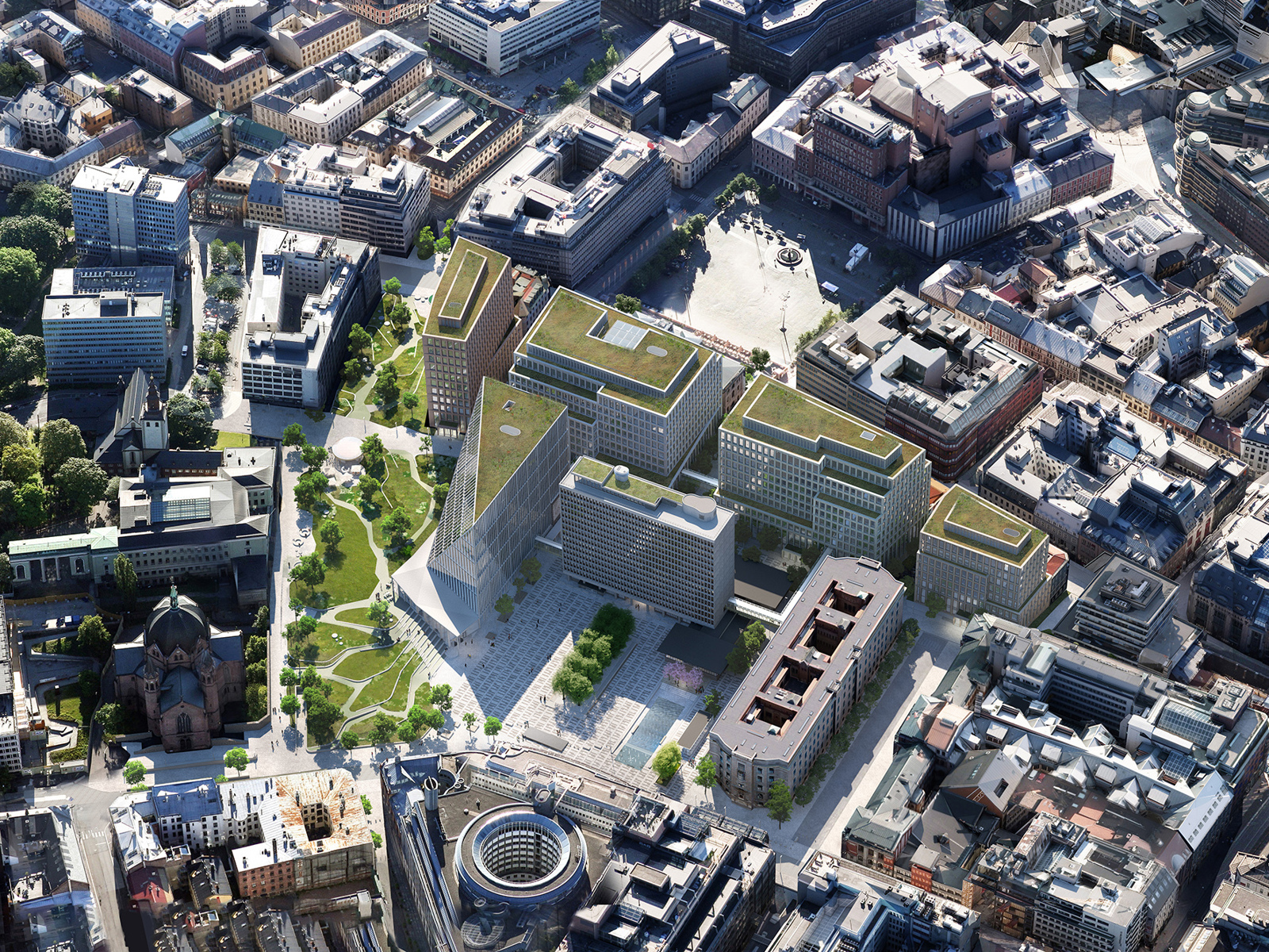 – A-blokka blir avgrensningen mot parken, og lener seg bakover for å slippe solen ned i parken. Det er byrommenes kvalitet som har vært avgjørende, forklarer Stokke.