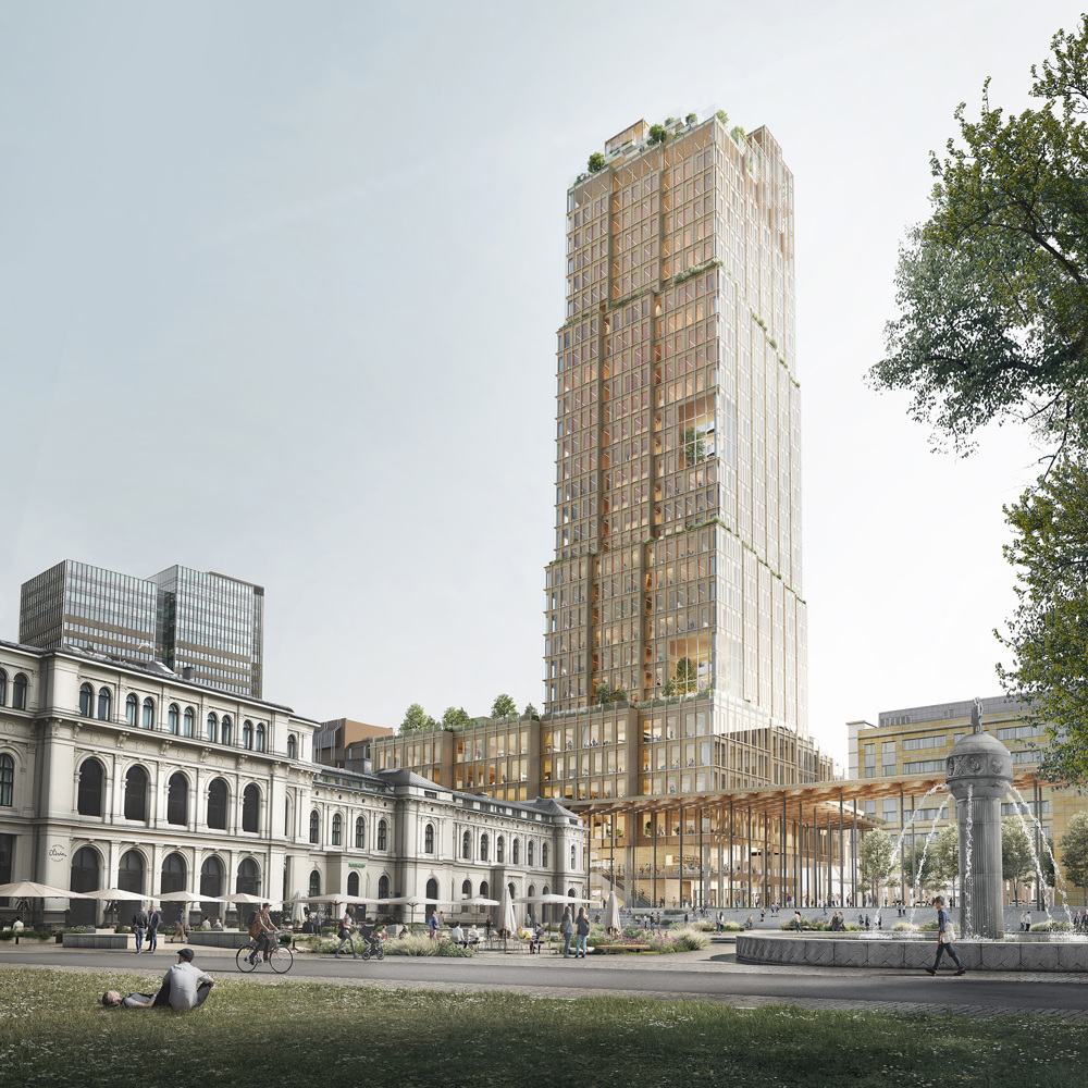 På Oslo S åpnes det for inntil 125 meters høyde, her illustrert ved forslaget fra Reiulf Ramstad arkitekter i samarbeid med CF Møller Architects.