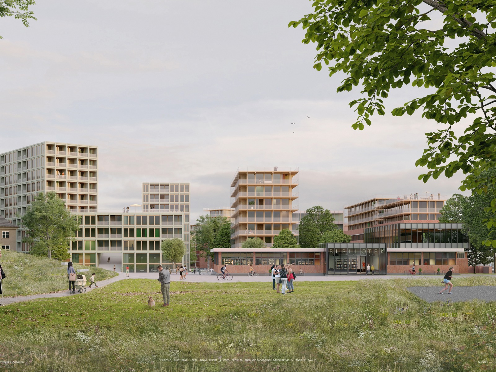 Oversiktsillustrasjon som viser Reiulf Ramstad arkitekters og LPOs visjon for hele området.
