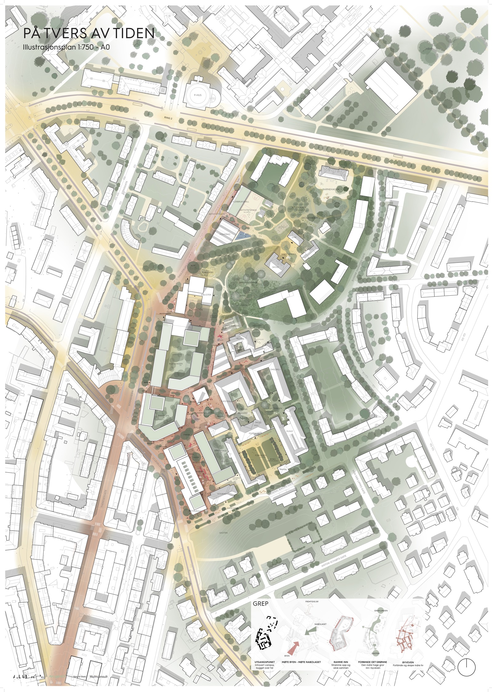 Oversiktsillustrasjonen viser A-lab-teamets visjon for hele tomta.