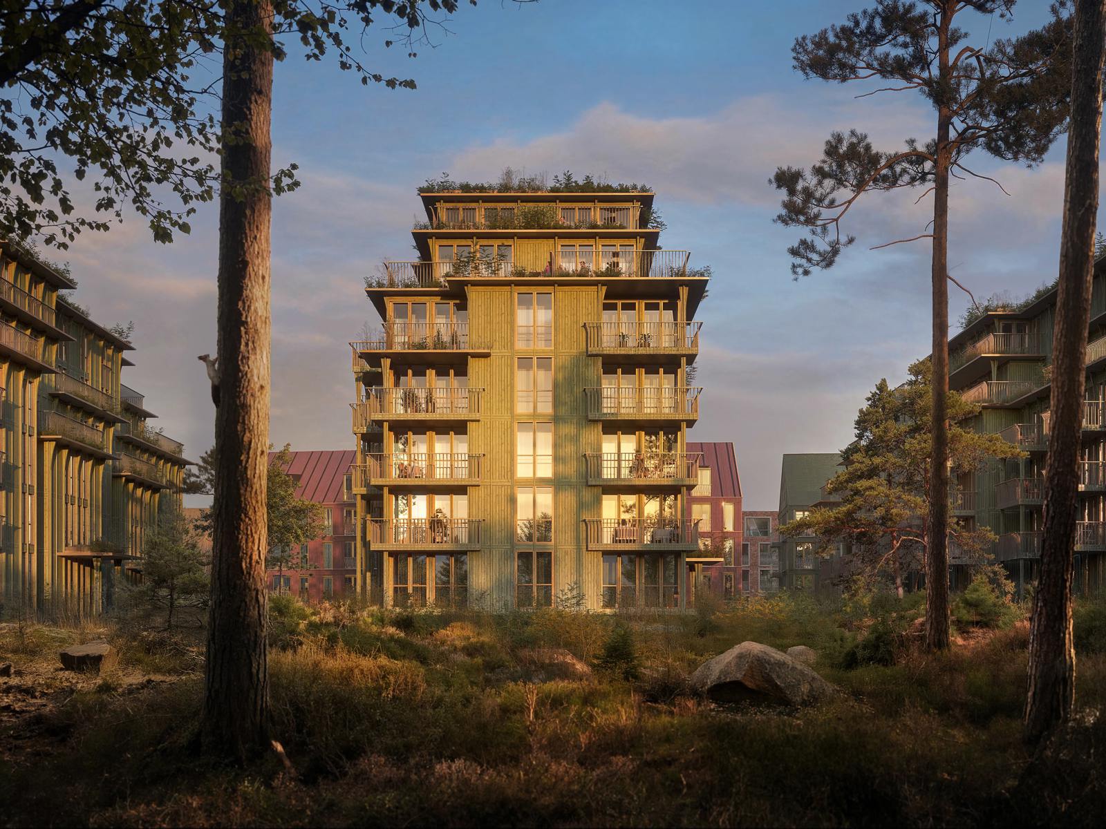 – Fra stedets gårdshistorie har vi blitt inspirert av store låvedører og trelemmer. Mens vi bygger «markahus» som speiler Østmarka med trepaneler og farger, uttaler Sunde til Aftenposten.