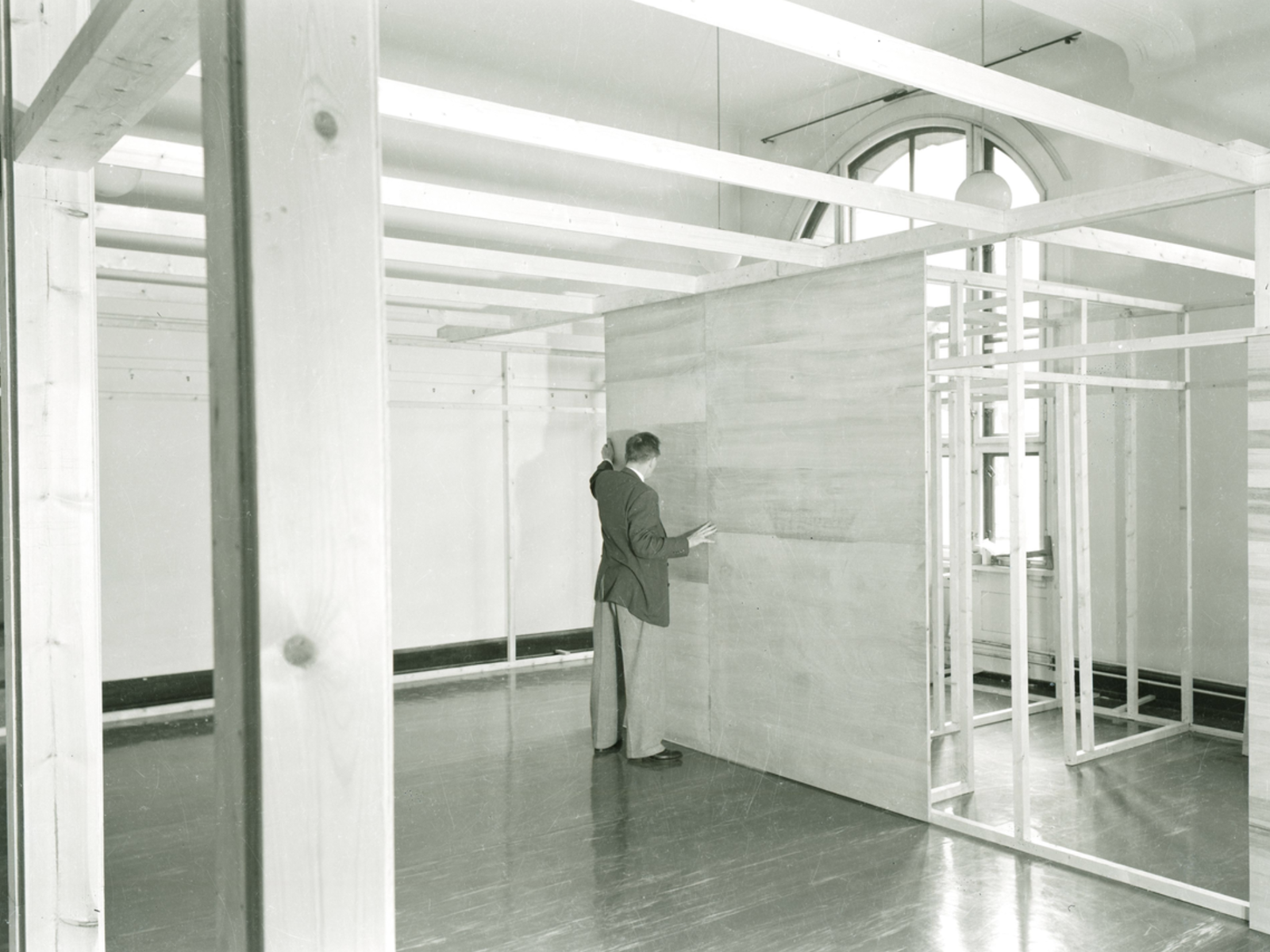 Arne Korsmo var en essensiell figur i utviklingen av arkitekturutdanningene på midten av 1900-tallet. Her avbildet ved Statens Håndverk- og Kunstindustriskole i 1953.