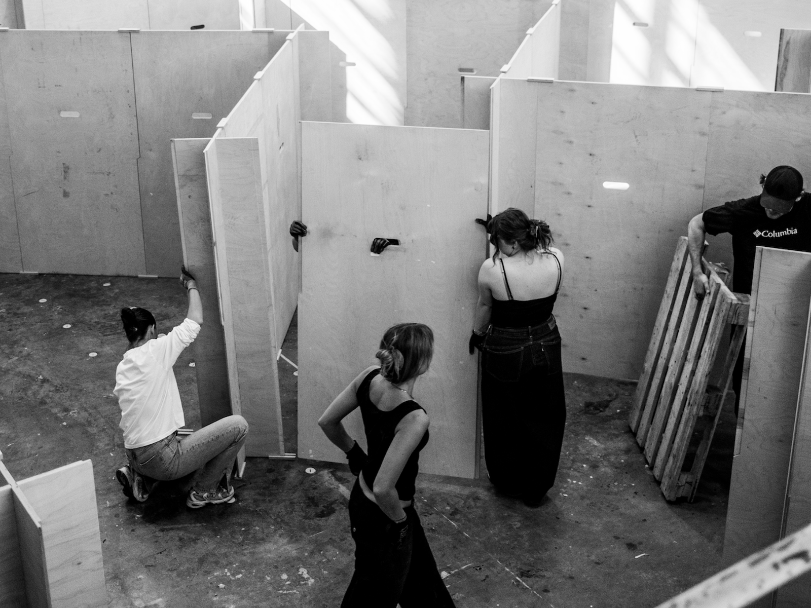 Utstillingen «120 Hours 2026: Kittiwake Hotel» i Byggehallen på Arkitektur- og designhøgskolen i Oslo åpnet fredag ettermiddag. Her fra monteringarbeid tidligere i uken.