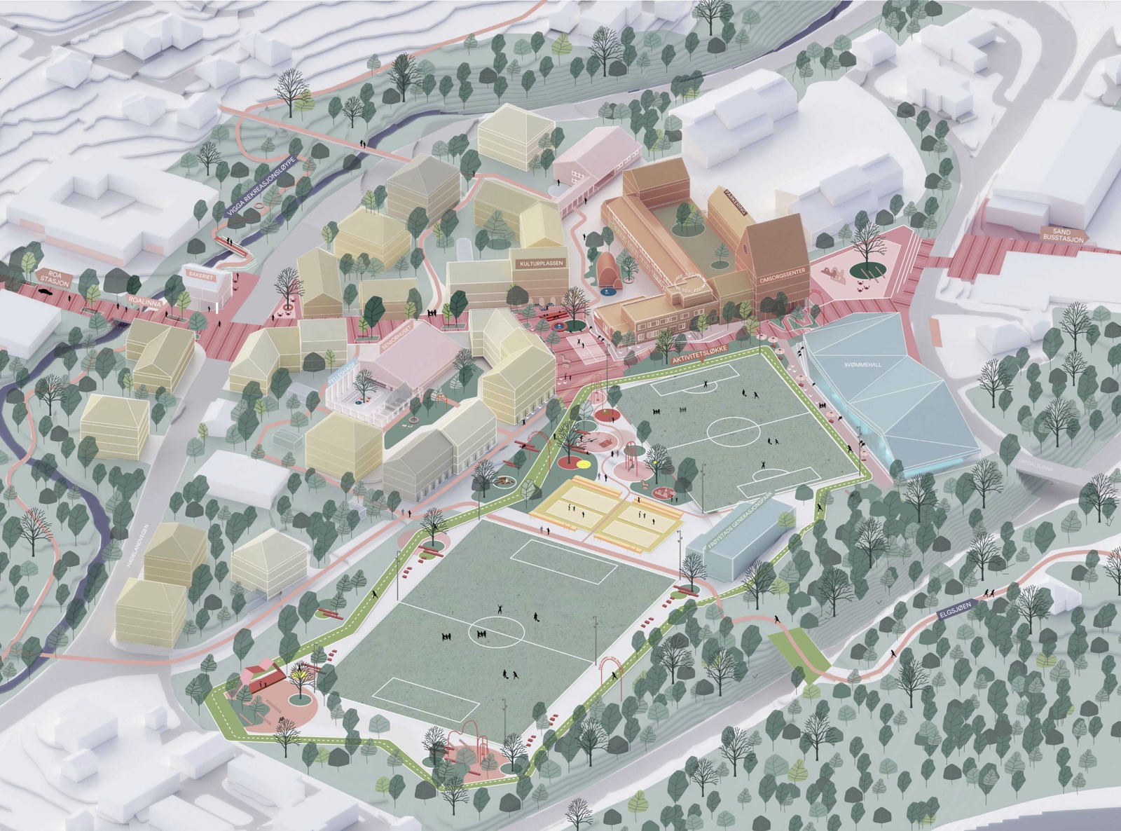 Prosjektet viser et sterkt engasjement for å gjenbruke og forsterke eksisterende lokale funksjoner, noe som tilfører dybde og kontinuitet til forslaget. Det legger en klar vekt på idrett, kultur og omsorgssenteret som sentrale anker i den urbane strukturen, og skaper meningsfulle møteplasser for lokalsamfunnet. Disse elementene bidrar til en sosialt inkluderende og stedsspesifikk strategi som støtter opp om dagliglivet og langsiktig utvikling på Roa».
