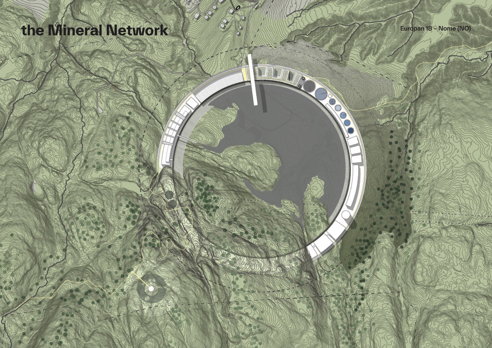 Vinnerforslaget for Nome, «The Mineral Network», av Giacomo Gallo (IT), Robert Thomas Younger (DE), Tadej Gregorič (SI), Bregje Lidewij Walkate (NL), Maarten Johannes Filius (NL), Remco Alexander van der Togt (NL) og Karlijn Simone Besse (NL).