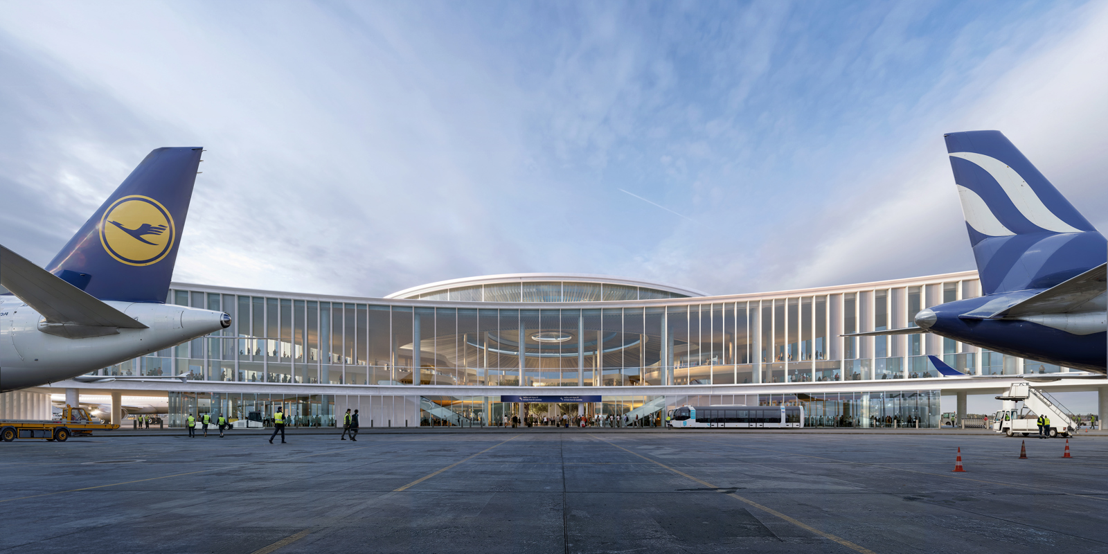 «Å forene den eksisterende flyplassen med nye elementer er sentralt i designkonseptet», skriver Haptic, som vil lage en flyplass som reflekterer byens fortid, nåtid og fremtid.