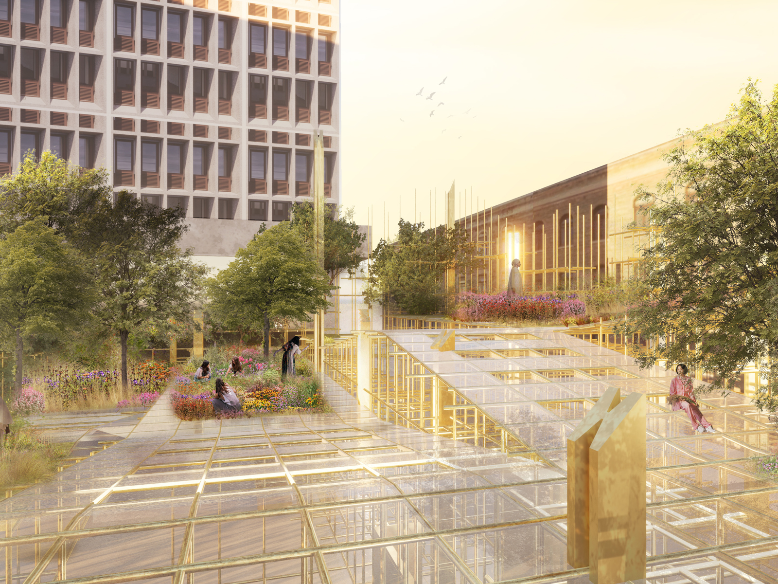 En stillasplattform og en hage for refleksjon utgjør forslag til Sumayya Vally og Suzanne Lacy,.