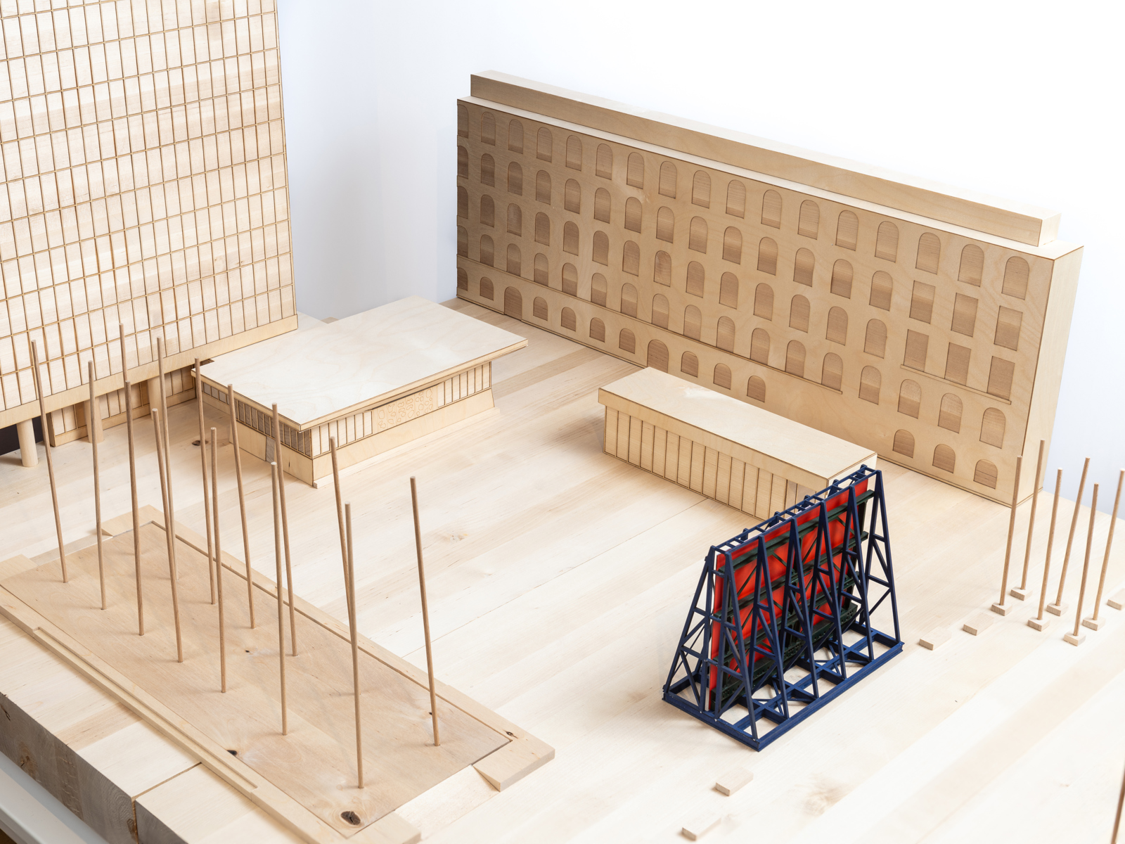 Skulpturen «En opprettholdelse« av Matias Faldbakken tar utgansgpunkt i stålriggen som ble brukt til å flytte Pablo Picassos «Fiskerne». Den er på «samme tid et historisk dokument, en readymade, en stor håndverksmessig investering, og også et slags maleri. Verket binder sammen Utøya og Regjeringskvartalet, og rammer inn den åpne plassen foran 22. juli-senteret».