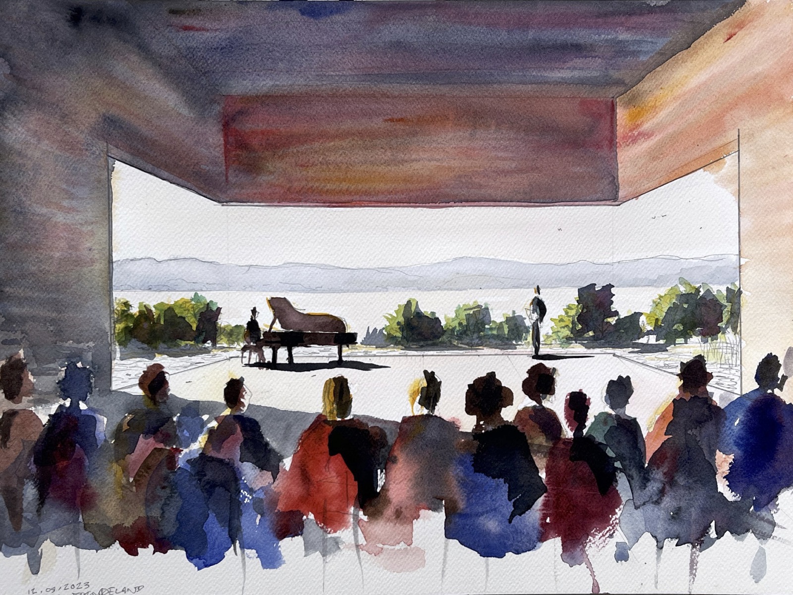 Geir Brendelands akvarell som illustrerer en tenkt situasjon i det nye Ladehammeren-prosjektet.