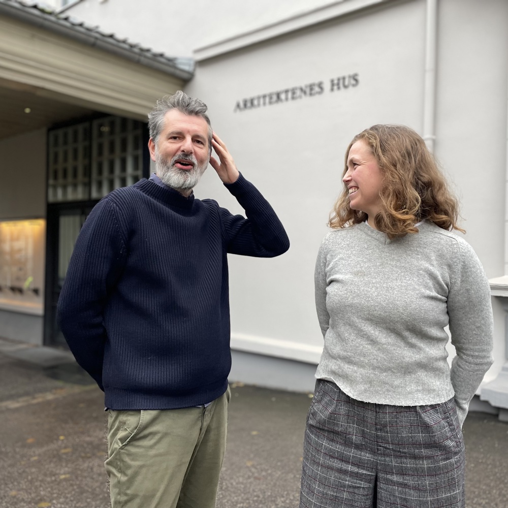 Adnan Harambasic, president i Norske arkitekters landsforbund og Oda Ellensdatter Solberg, leder i Oslo arkitektforening. De to lanserer nå arkitektkonkurranse om fremtidens Arkitektenes hus. Kun arkitekter under førti får delta.