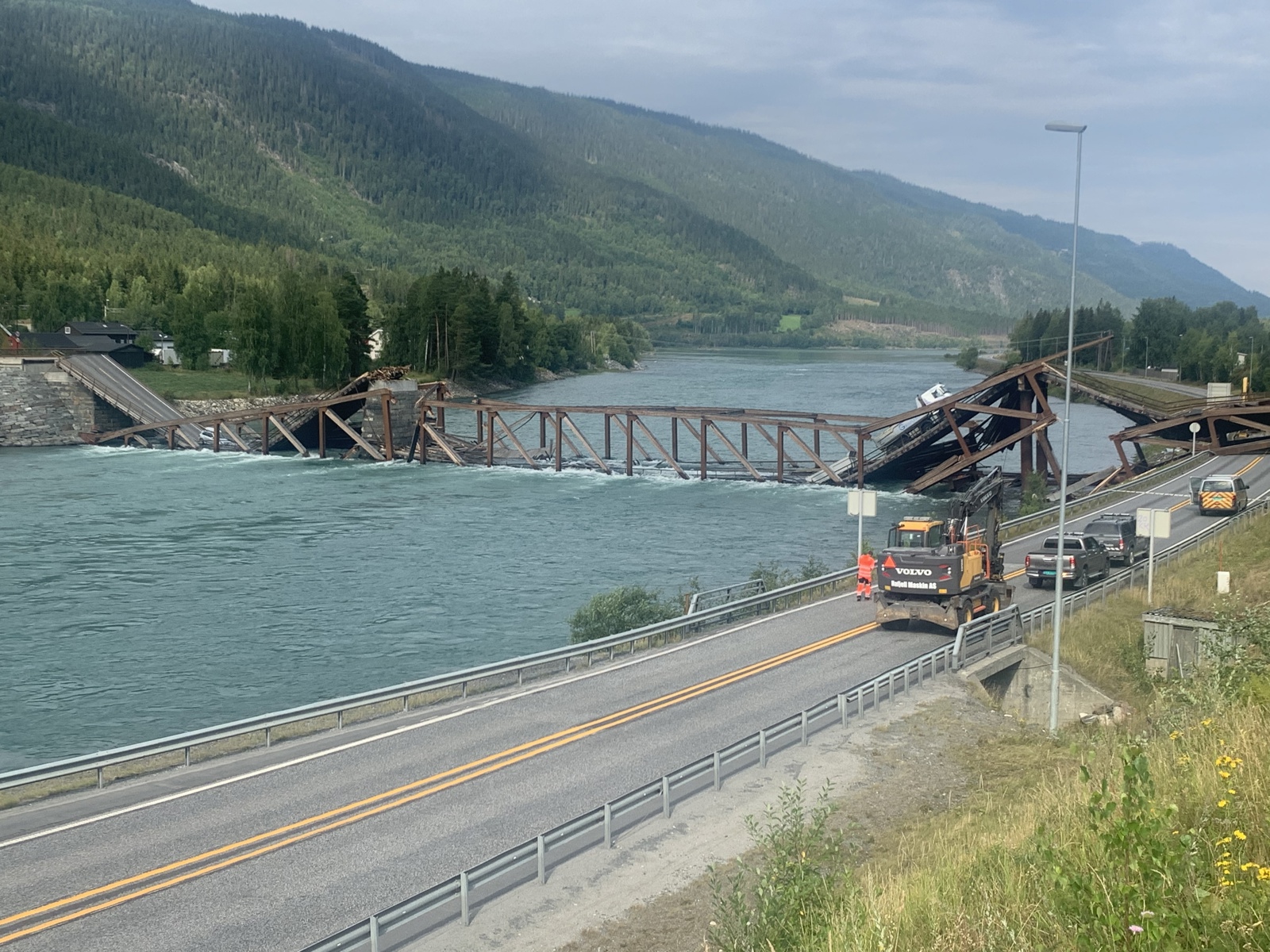 Den midlertidige bruen som ble satt opp etter brukollapset someren 2022 skal nå erstattes med en permanent løsning.