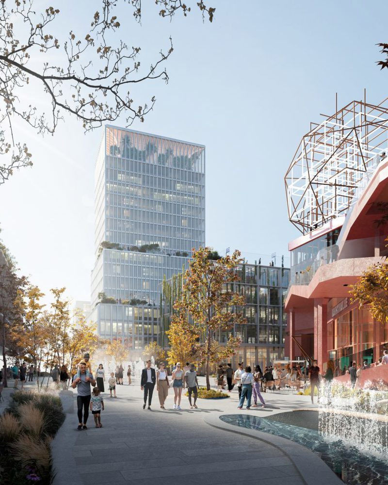 Tre høyhus i det tidligere industriområdet skal transformeres. SLA står for uteområdene.