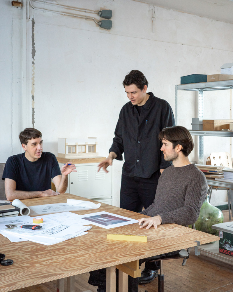To år er gått siden Kim Pløhn (fra venstre), Louis Gervais og Guðni Ásgeirsson vant konkurransen om Arkitektenes hus.