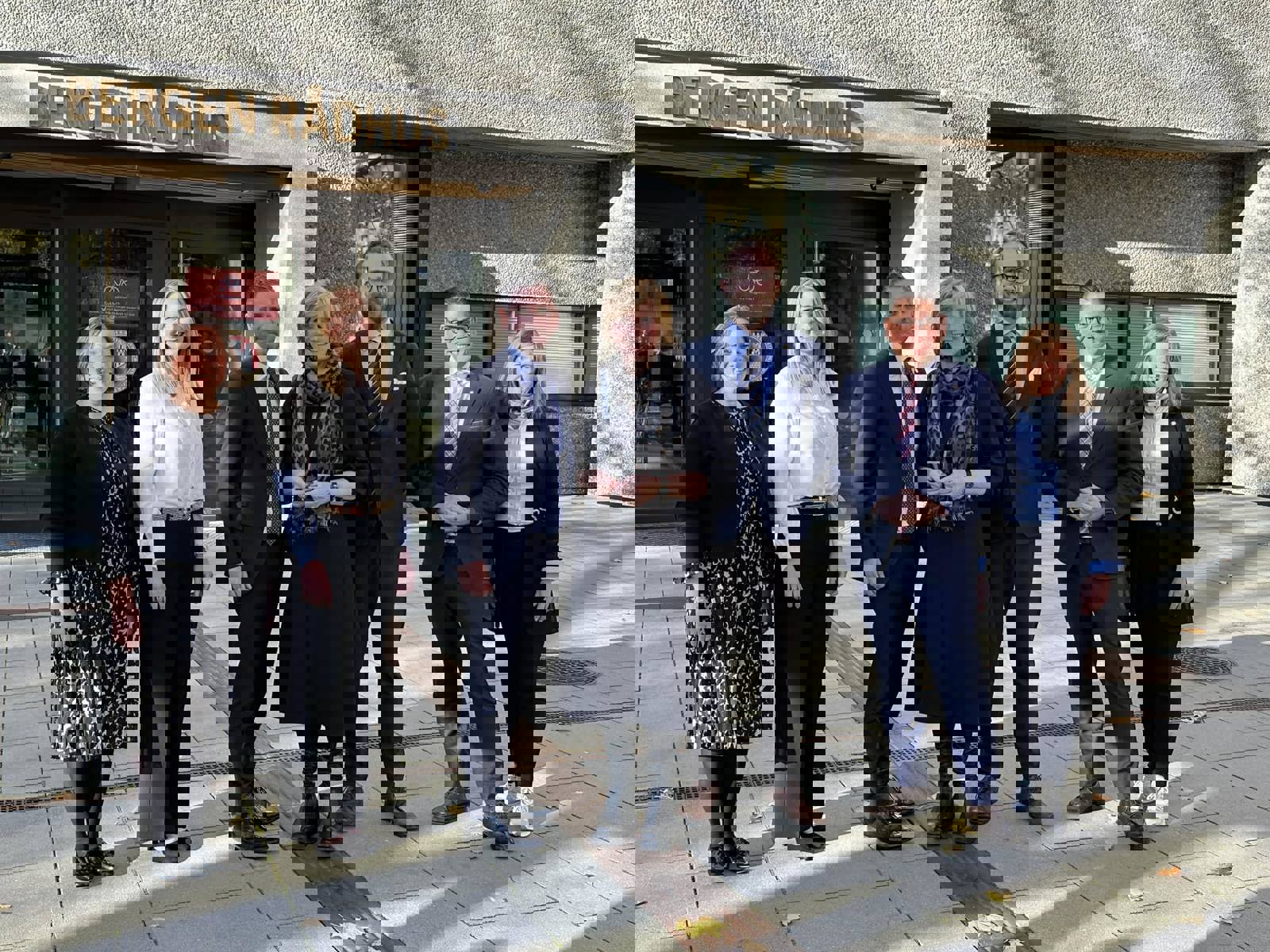 Bergens nye byråd. Ny byutviklingsbyråd, Christine Kahrs, helt til høyre i bildet.