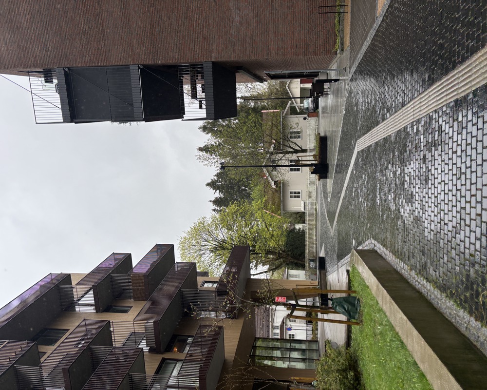 Ved det gamle næringsbygget som inntil nylig huset tatoveringssjappa Odins merke runder vi et hushjørne og kommer inn i boligprosjektet Aveny Vest. Her er det også Dark arkitekter som står bak, og prosjektet ligger på samme øst-vest-akse som Meierikvartalet, men i Aveny Vest er det snakk om en helt annen utnyttelsesgrad.