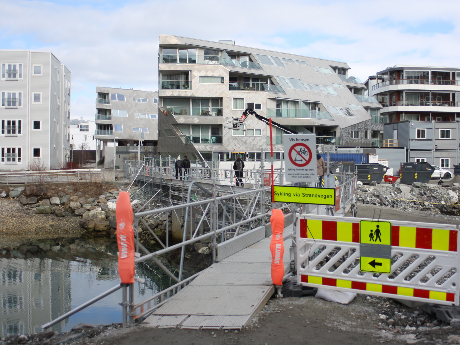 Når man har mer enn fem etasjer, mister man kontakt med gatelivet og blir en del av luftrommet, med flyene og fuglene, liker byplanlegger Jan Gehl å si, og det er en gjenkjennelig følelse i møte med Strandkanten-prosjektene. Området som har blitt utviklet med leilighetsbygg de siste par tiårene, har blitt kalt en fiasko, en stygg andunge. Det er som om de, i sin higen etter himmelen, har glemt å kikke ned og huske bakkekontakt, bylivet og gateplanlegging.