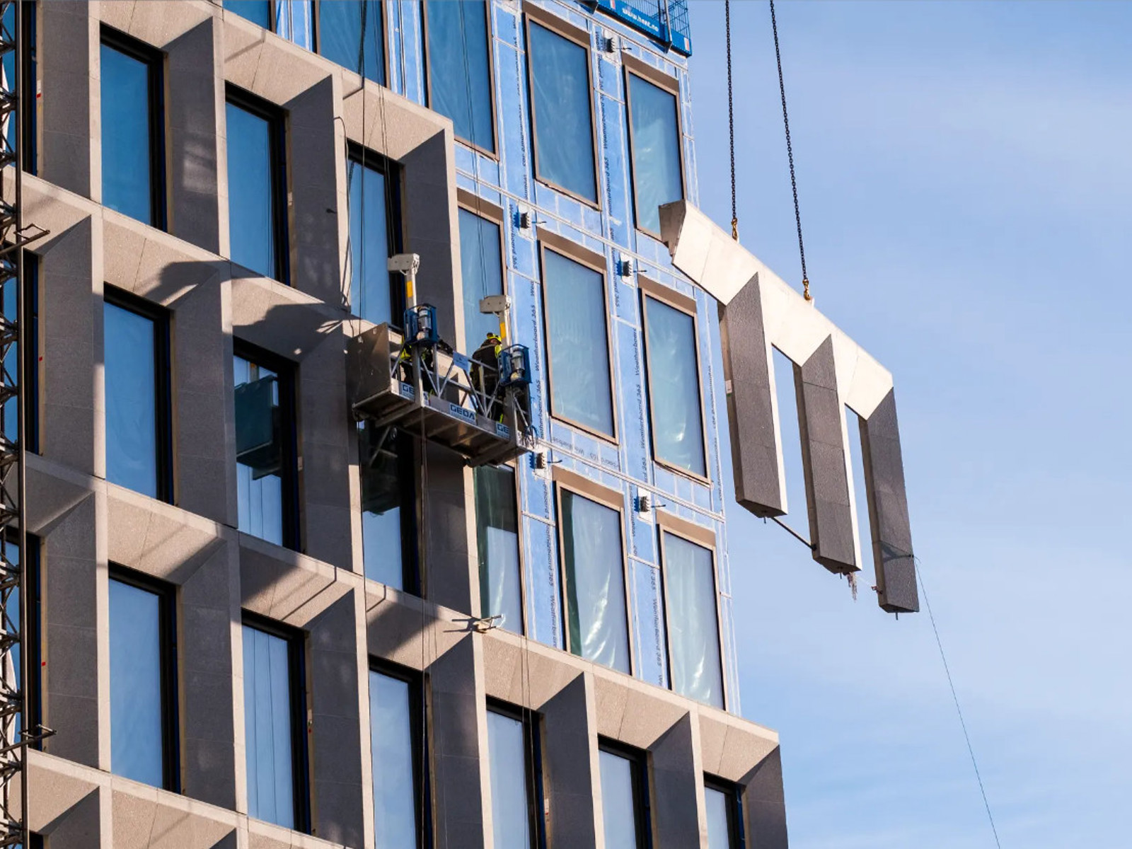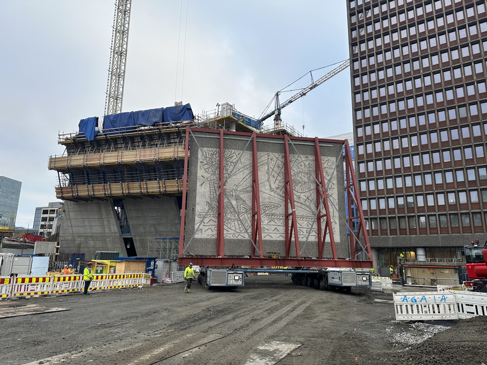 Picassos «Fiskerne» flyttes mens A-blokka er under oppføring i bakgrunnen.